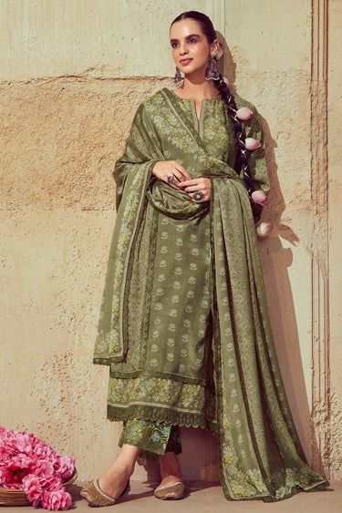 Muslin Fabric Olive Color Supreme Festive Look Salwar Suit