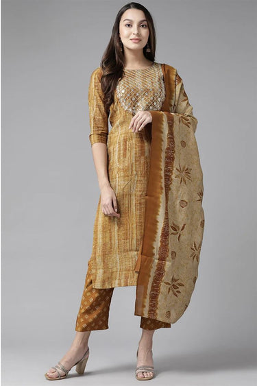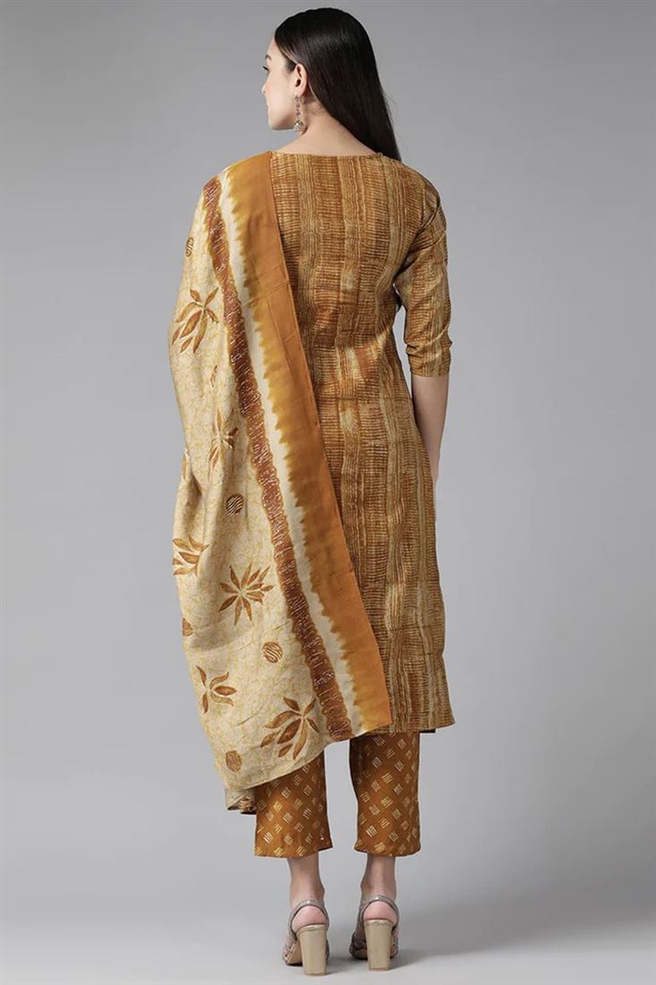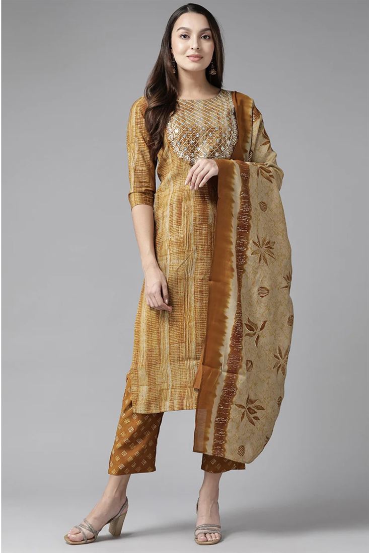 Mustard Color Art Silk Fabric Coveted Top Bottom Dupatta