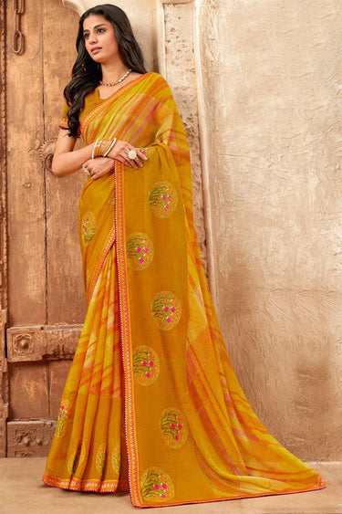 Mustard Color Graceful Chiffon Saree For Festive