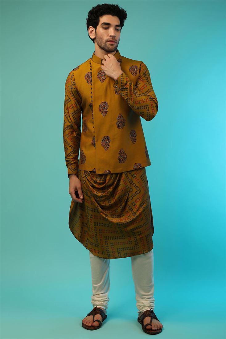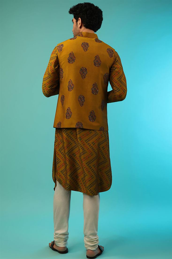 Mustard Color Rayon Fabric Spectacular Kurta Pyjama With Jacket
