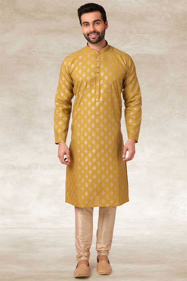 Mustard Color Readymade Stright Kurta Pyjama In Cotton Fabric