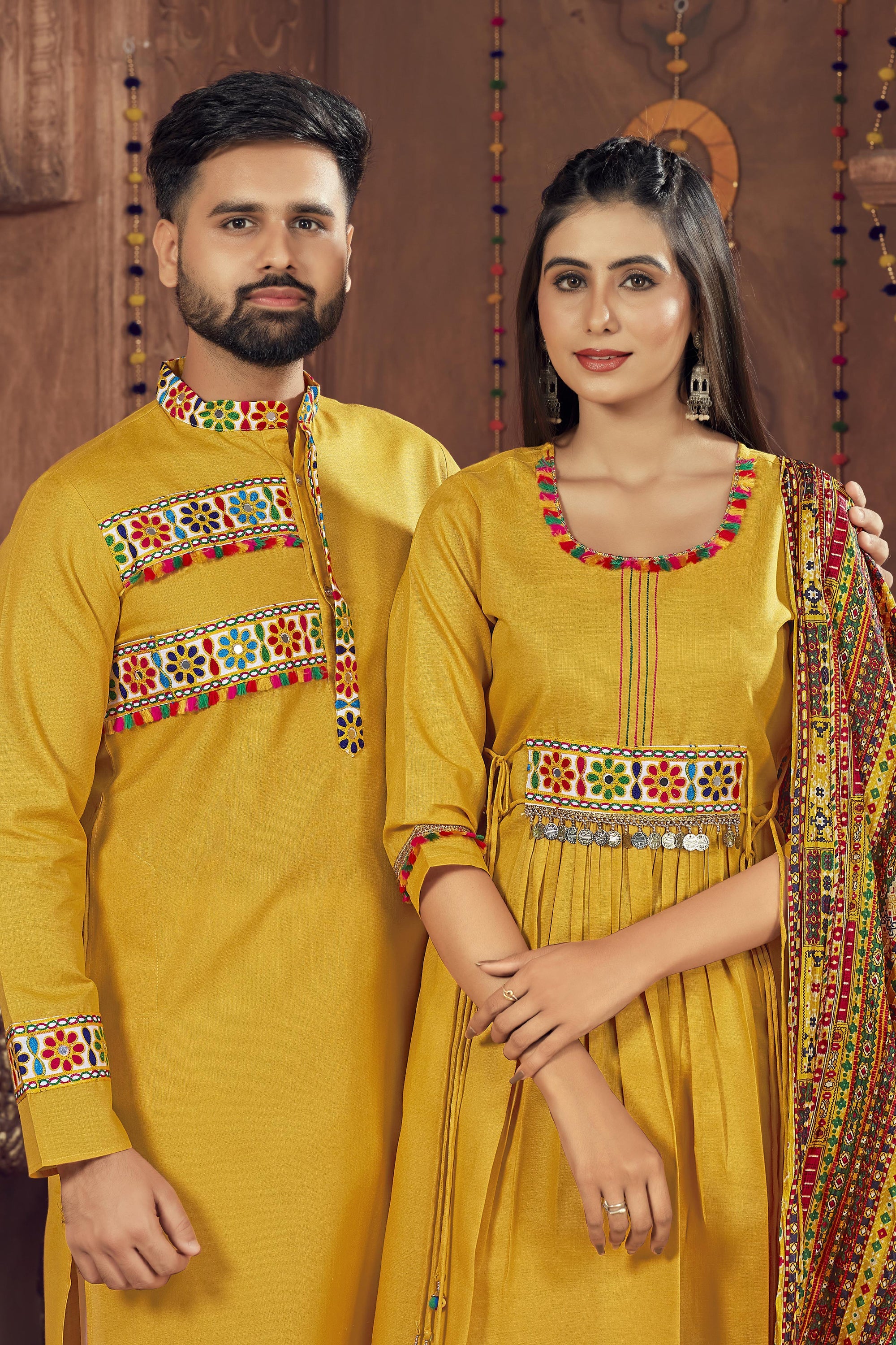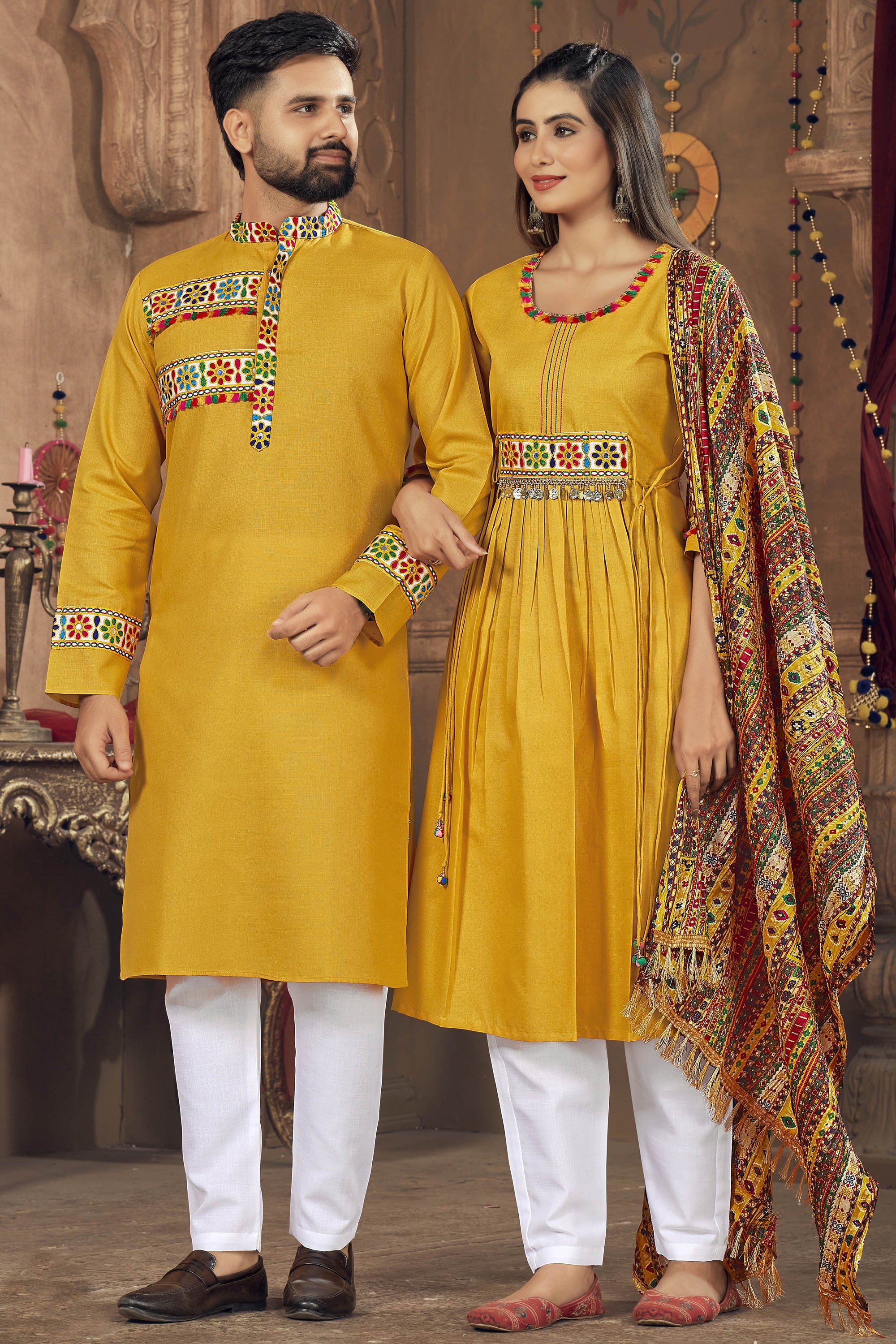 Mustard Cotton Fabric Navratri Special Trendy Readymade Kurta Pyjama For Men