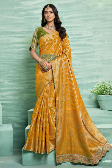 Mustard Sangeet Wear Silk Weaving Work Saree
