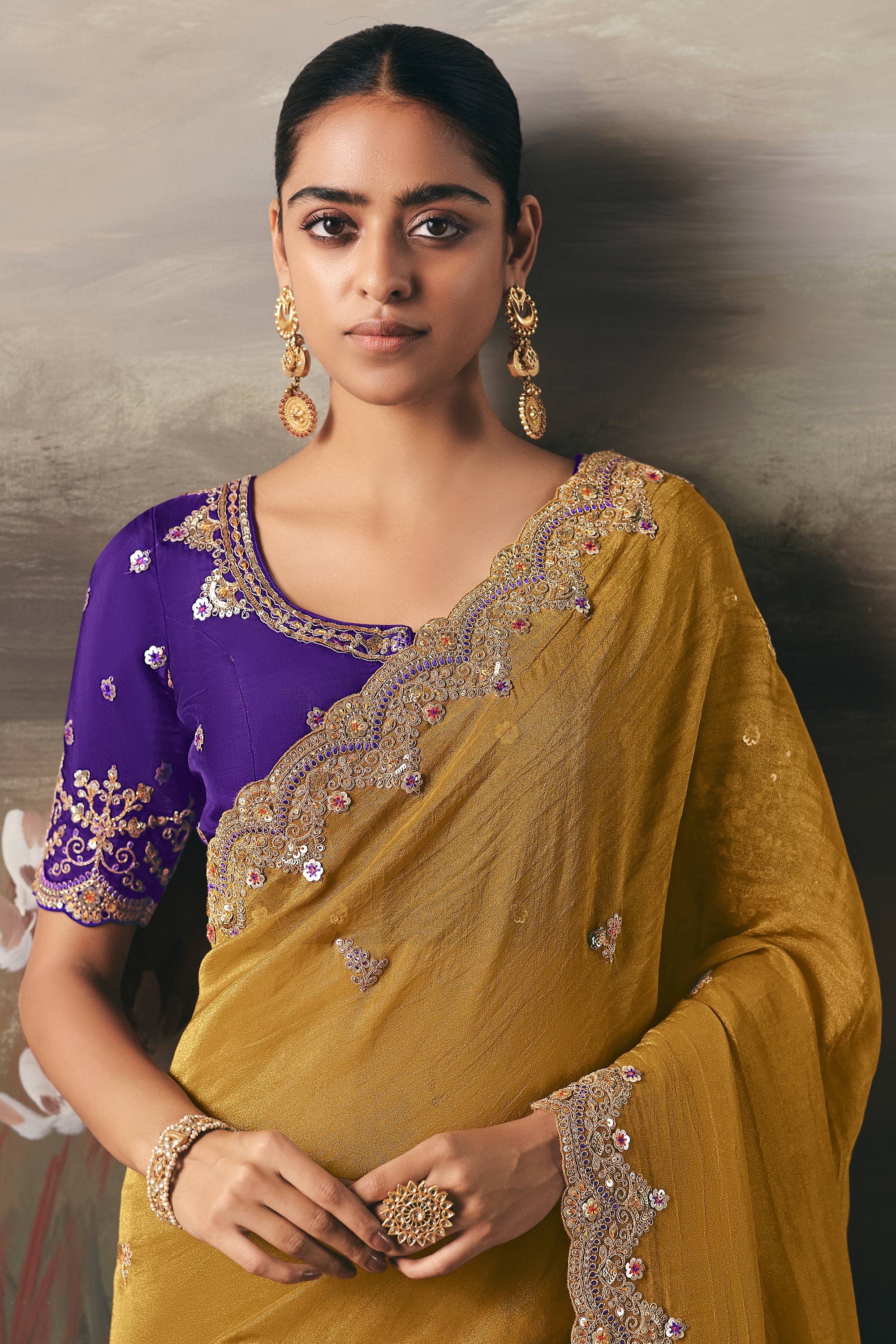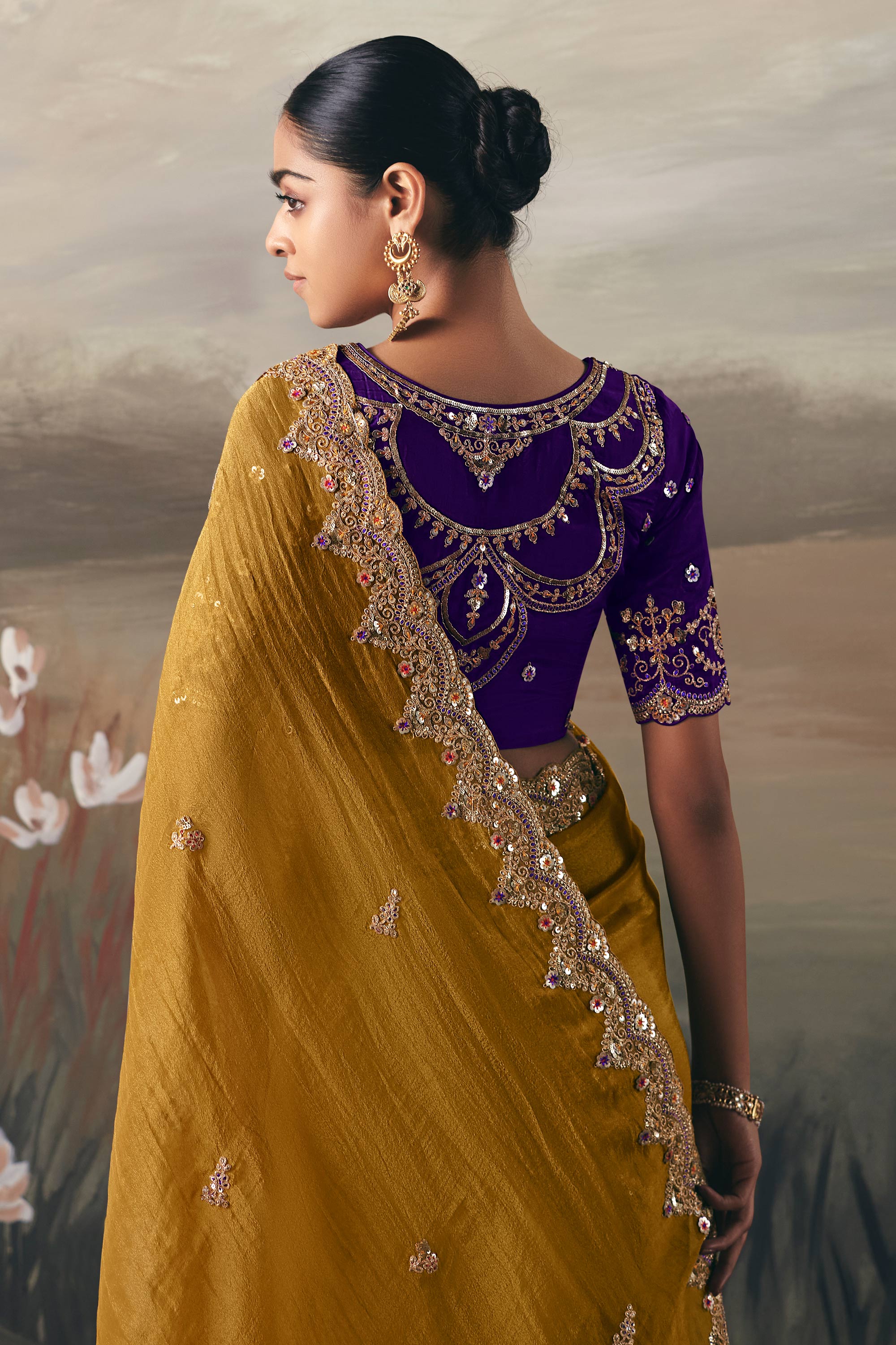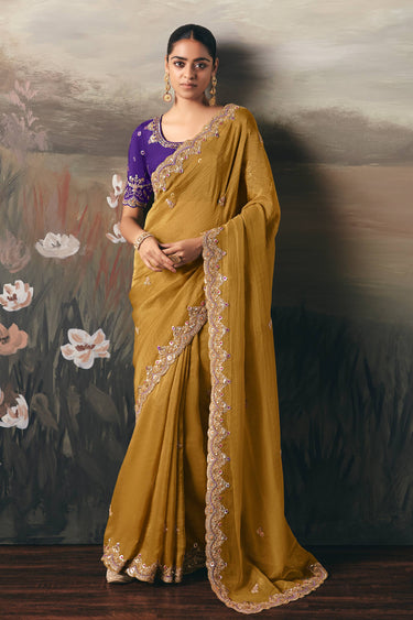 Mustard Sangeet Wear Tissue Border Work Saree