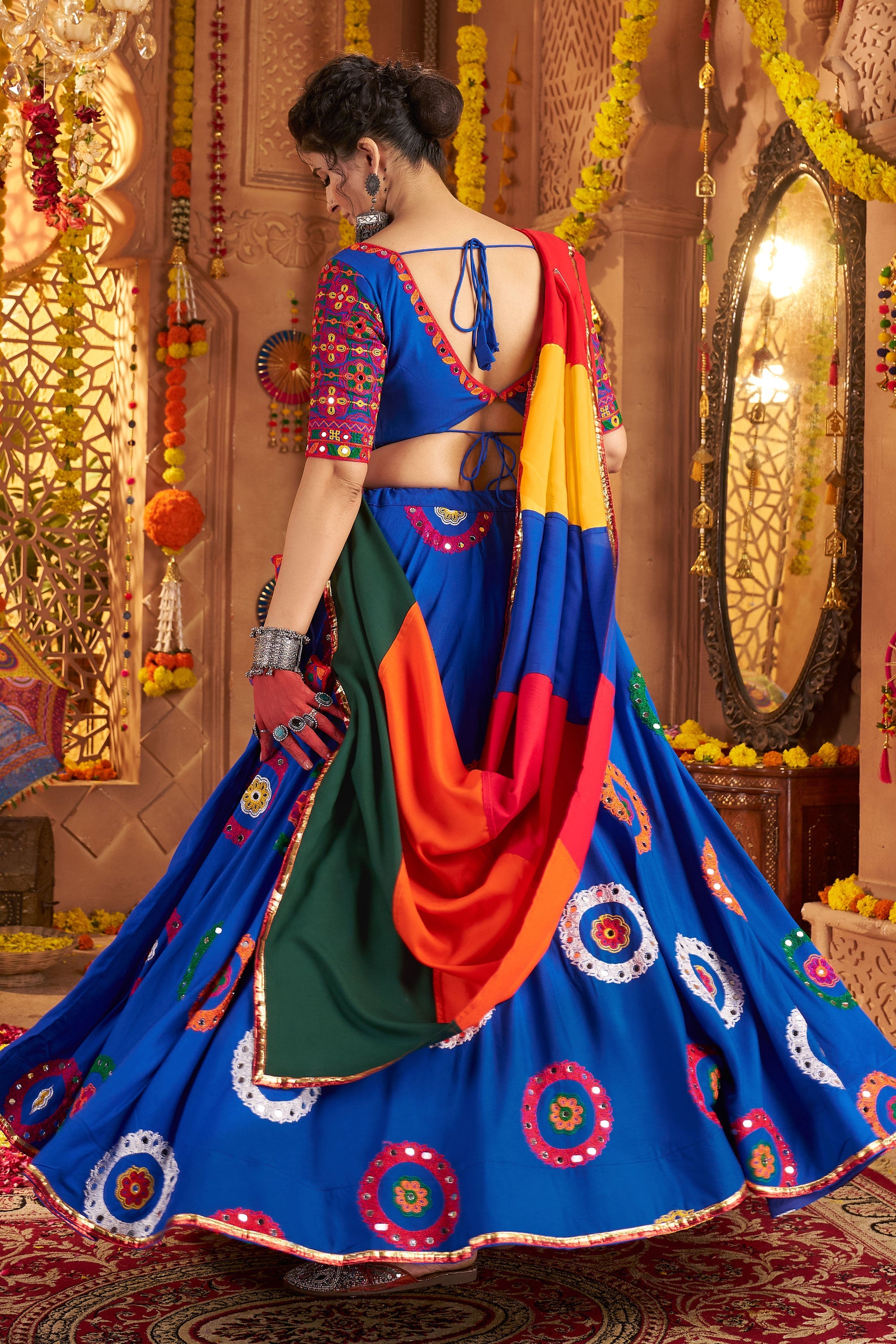 Navratri Specia Blue Cotton Viscose Embroidered Work Lehenga Choli For Garba
