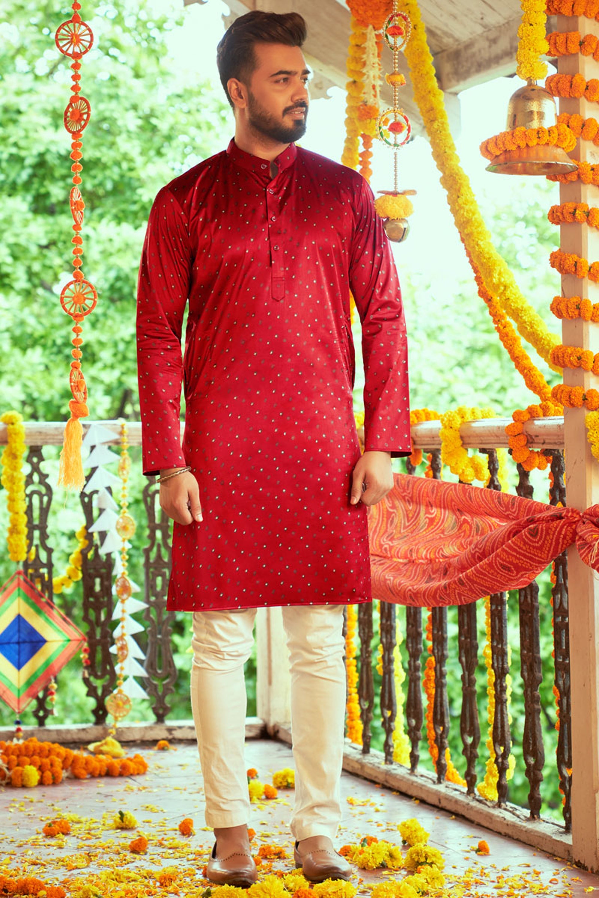 Navratri Special Attractive Art Silk Fabric Maroon Color Readymade Kurta