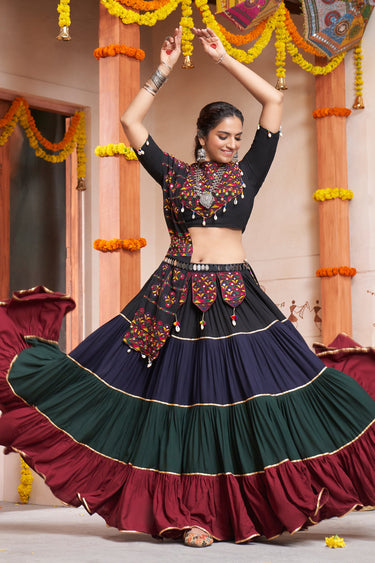 Navratri Special Excellent Multi Color Rayon Fabric Readymade Chaniya Choli With Embroidered Work