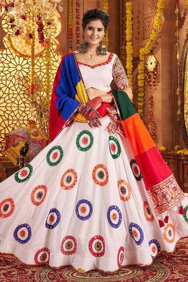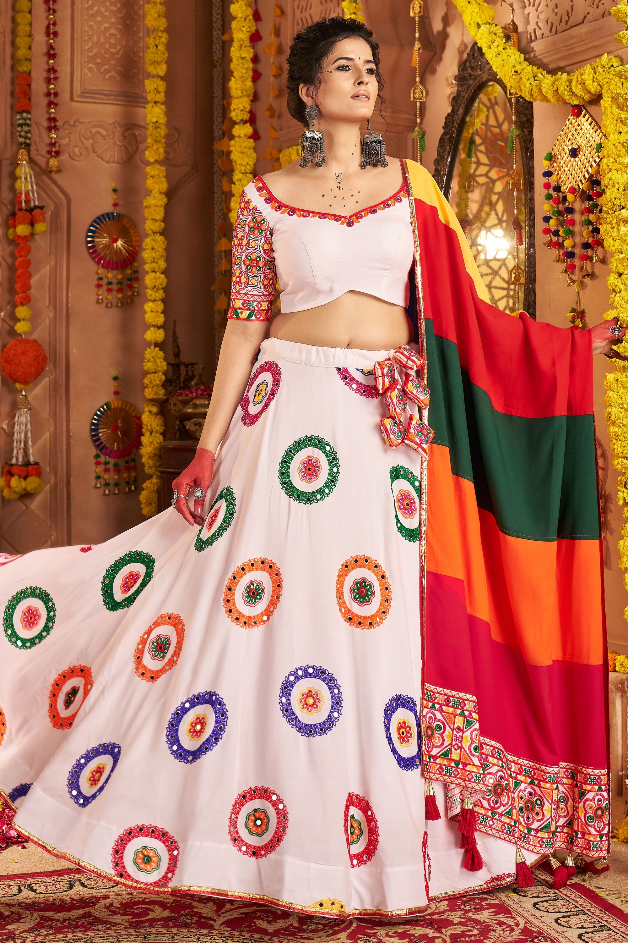 Navratri Special White Embroidered Cotton Viscose Lehenga Choli
