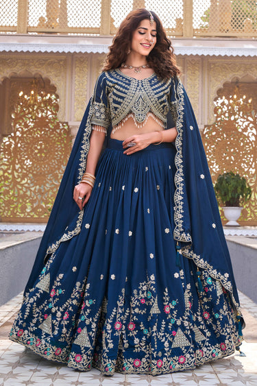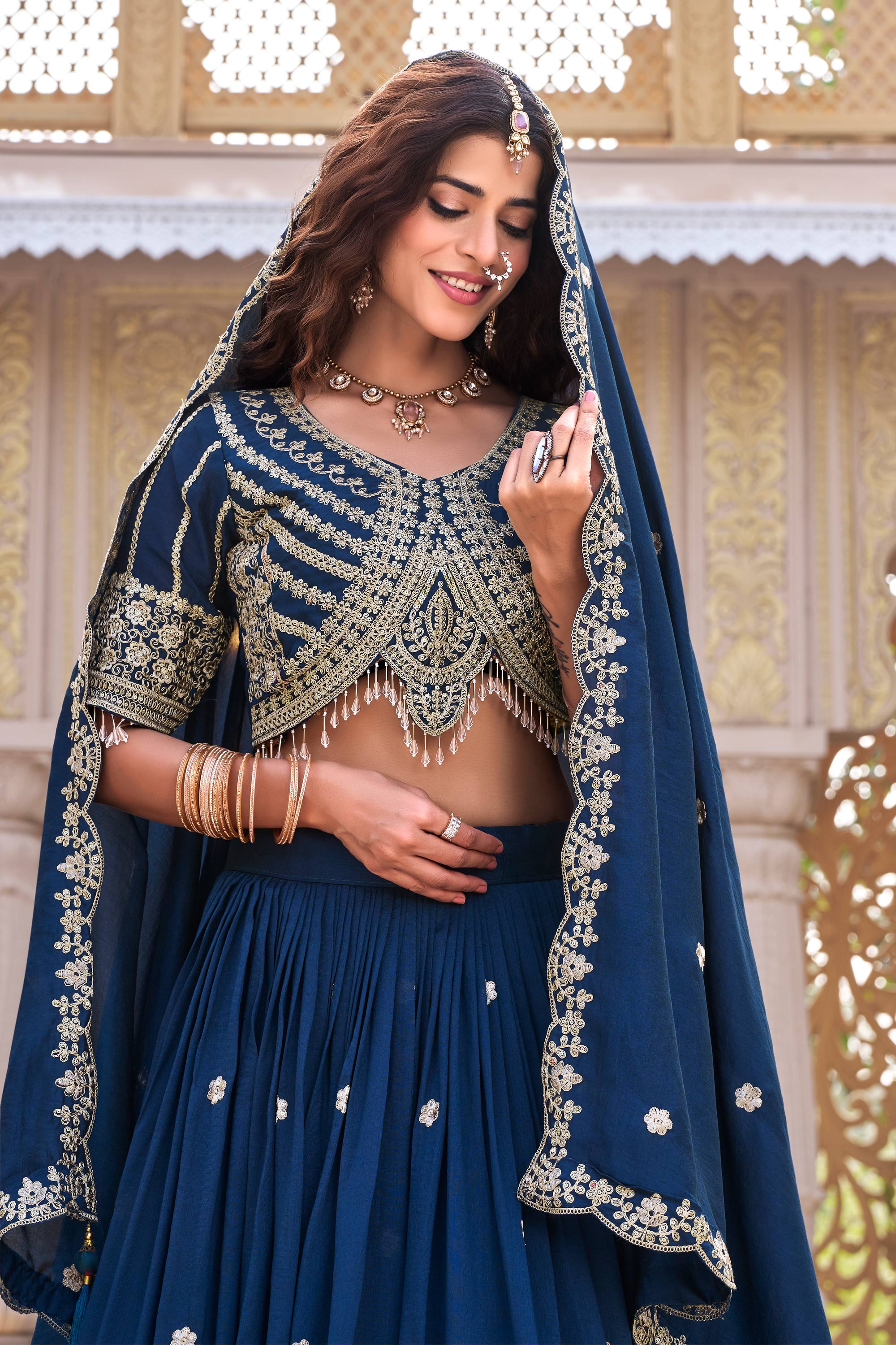 Navy Blue Art Silk Embroidered Readymade Lehenga Choli