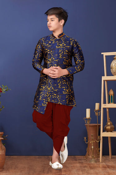 Navy Blue Color Occasion Wear Art Silk Fabric Designer Readymade Indo Western For Boys