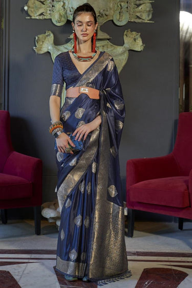 Navy Blue Color Reception Wear Trendy Weaving Work Saree In Silk Fabric