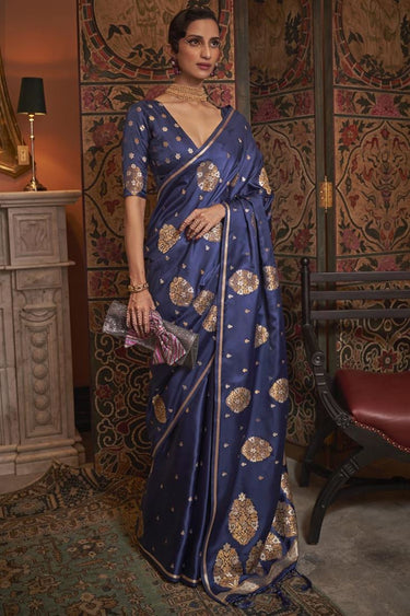 Navy Blue Color Satin Fabric Beatific Party Style Saree