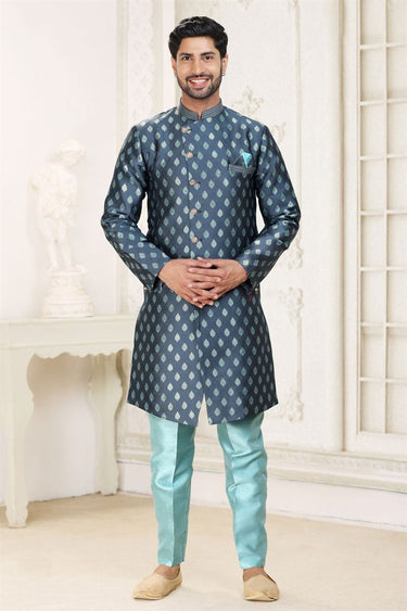 Navy Blue Jacquard Fabric Graceful Readymade Men Indo Western For Wedding Wear