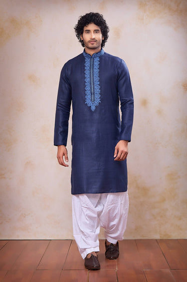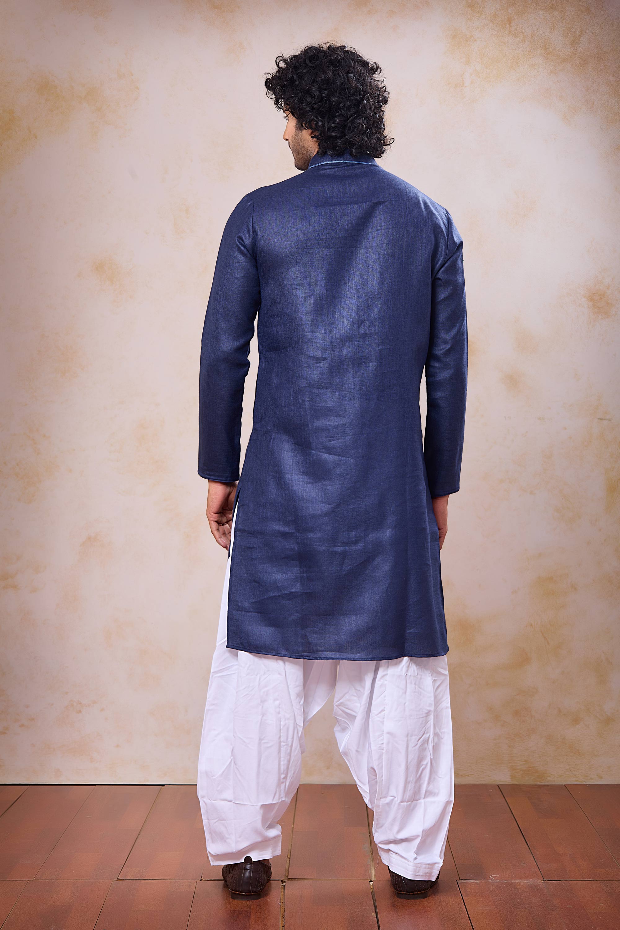 Navy Blue Sangeet Wear Cotton Readymade Kurta With Patiyala Style Bottom For Men