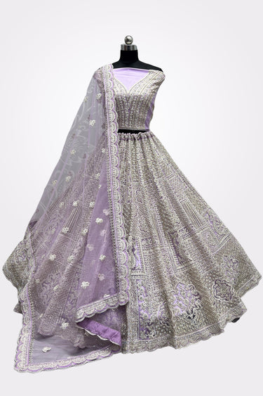 Net Bridal Wear 3 Piece Lehenga Choli In Lavender Color With Embroidery Work