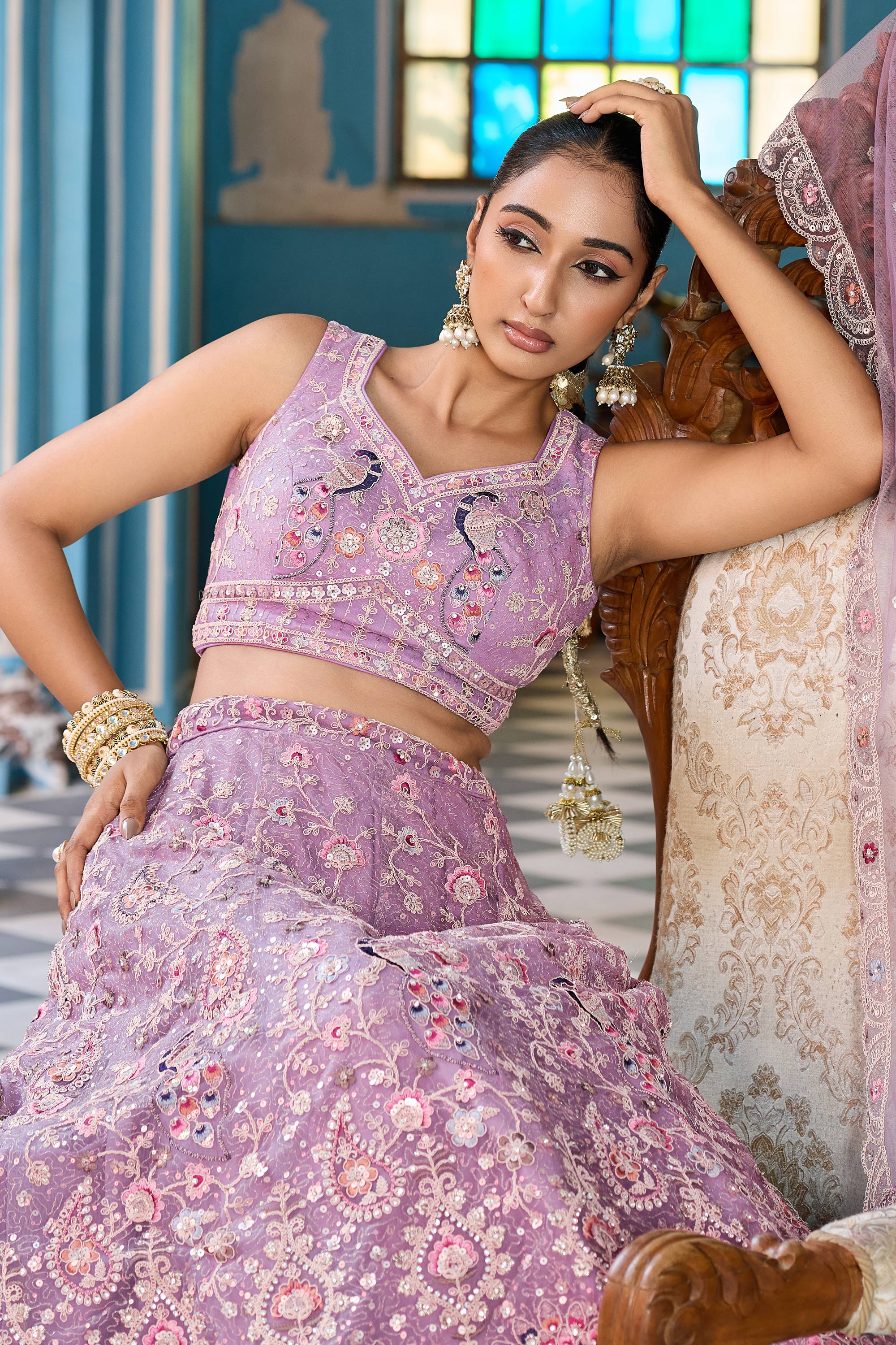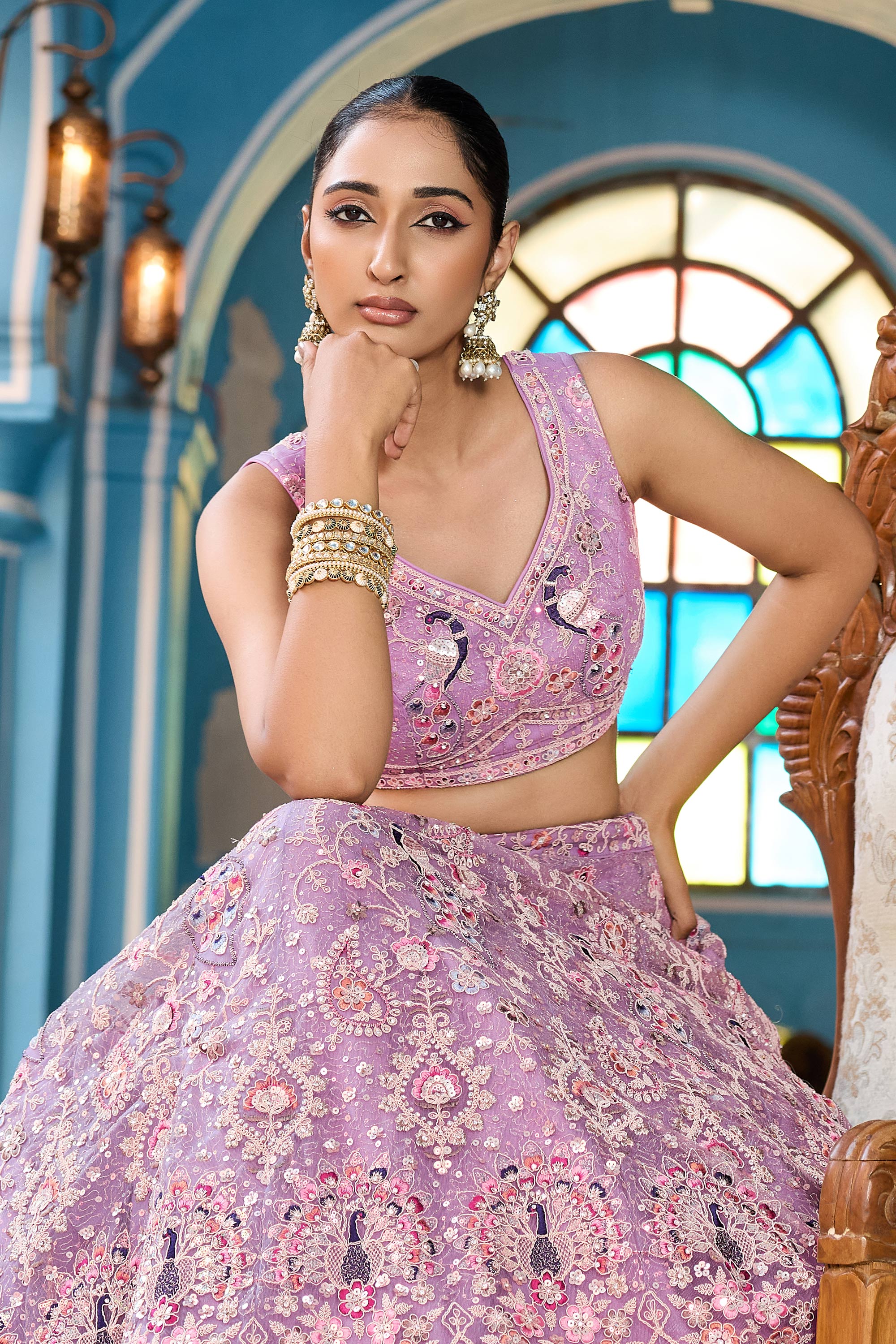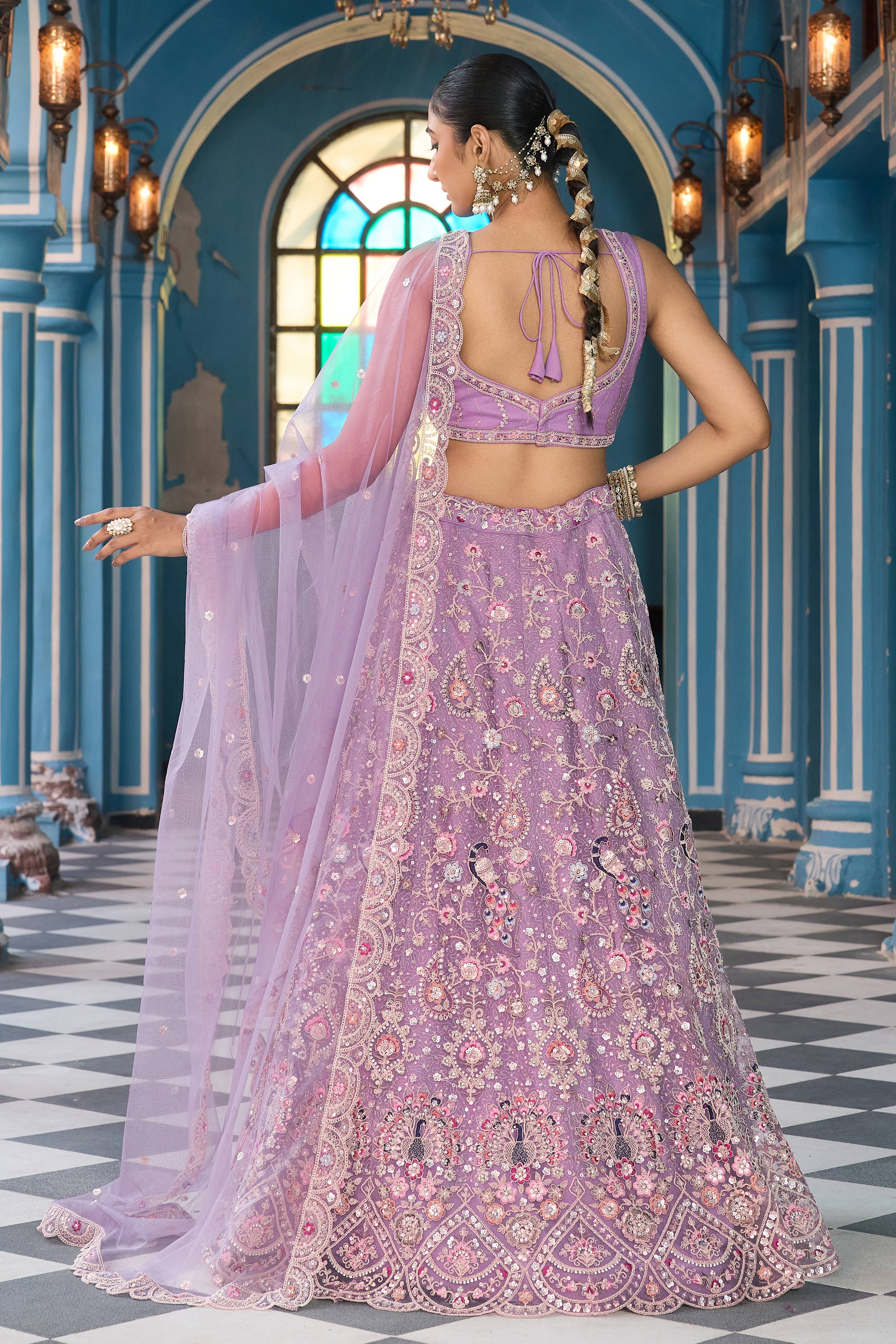 Net Embroidered Lavender Wedding Wear Lehenga Choli