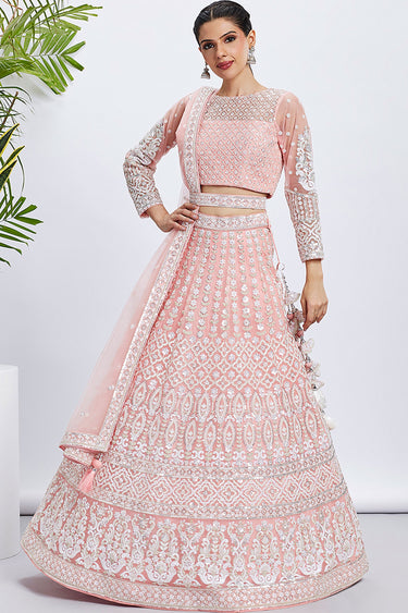 Net Fabric Function Wear Sequins Work Lehenga Choli In Pink Color