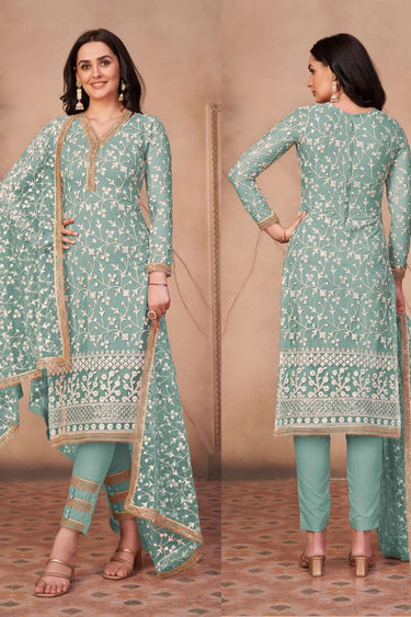 Net Fabric Light Cyan Color Charismatic Embroidered Work Salwar Suit