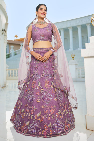 Net Fabric Purple Color Wedding Wear 3 Piece Lehenga Choli