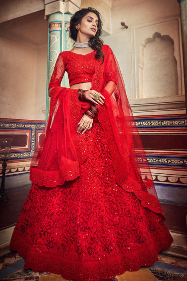 Net Fabric Red Color Beatific Sequins Embroidered Lehenga