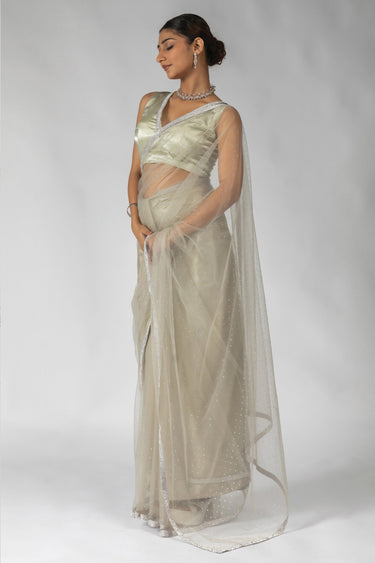 Net Stone Work Saree In Beige Color