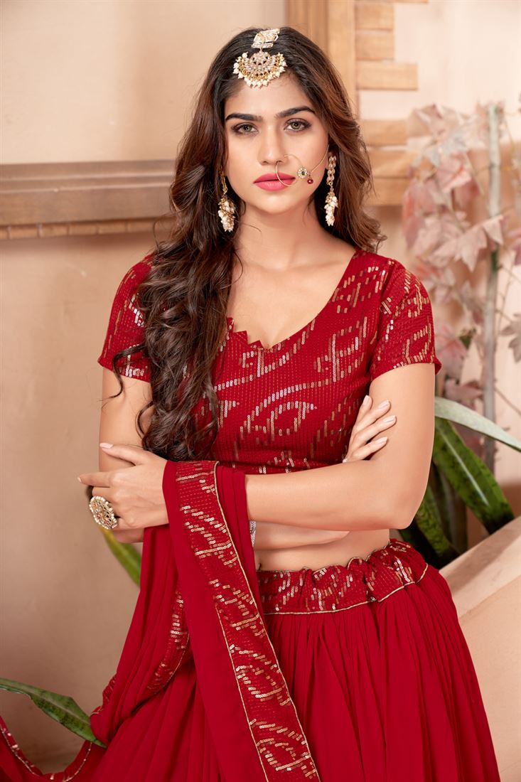 Occasion Wear Chaniya Choli In Red Georgette Fabric With Sequins Work And Wedding Wear Blouse