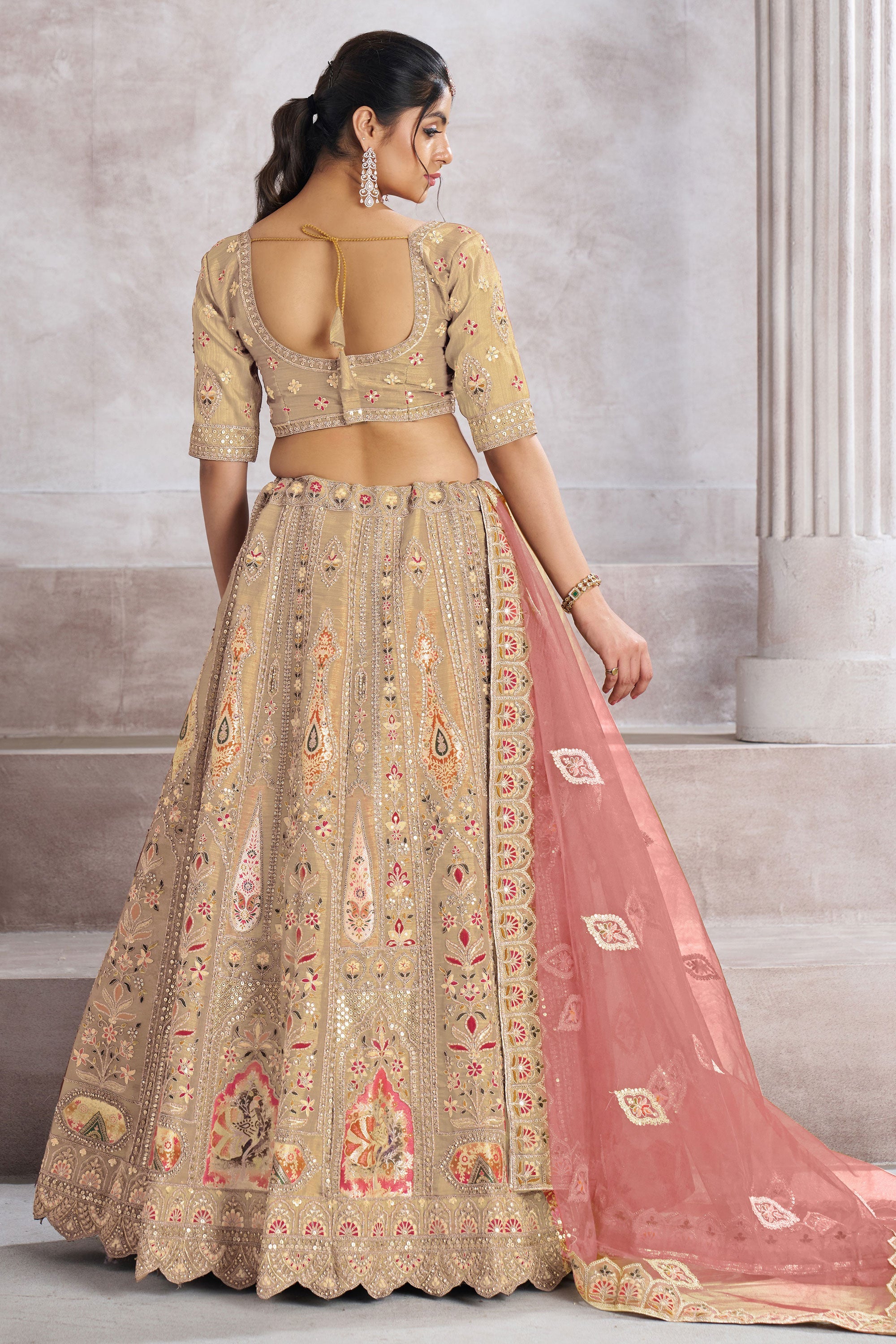 Occasion Wear Lehenga Choli In Beige Banarasi Silk Fabric