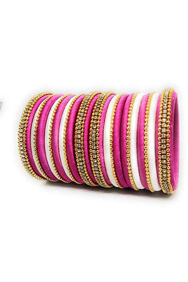 Off White And Rani Color Handmade Silk Thread Designer Bangles Set For Function