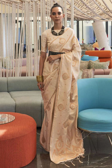 Off White Color Function Wear Saree In Wonderful Satin Fabric