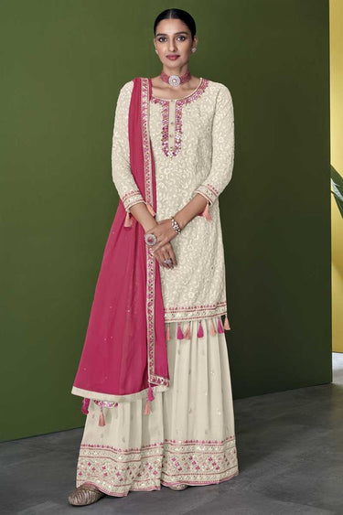 Off White Color Georgette Fabric Function Wear Chic Palazzo Suit