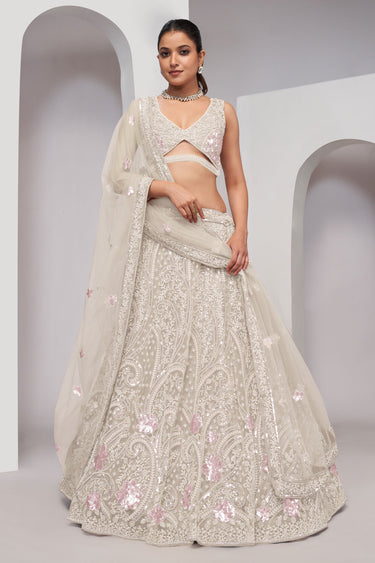 Off White Color Net Fabric Coveted Lehenga With Sequins Work