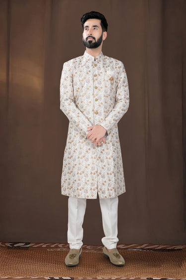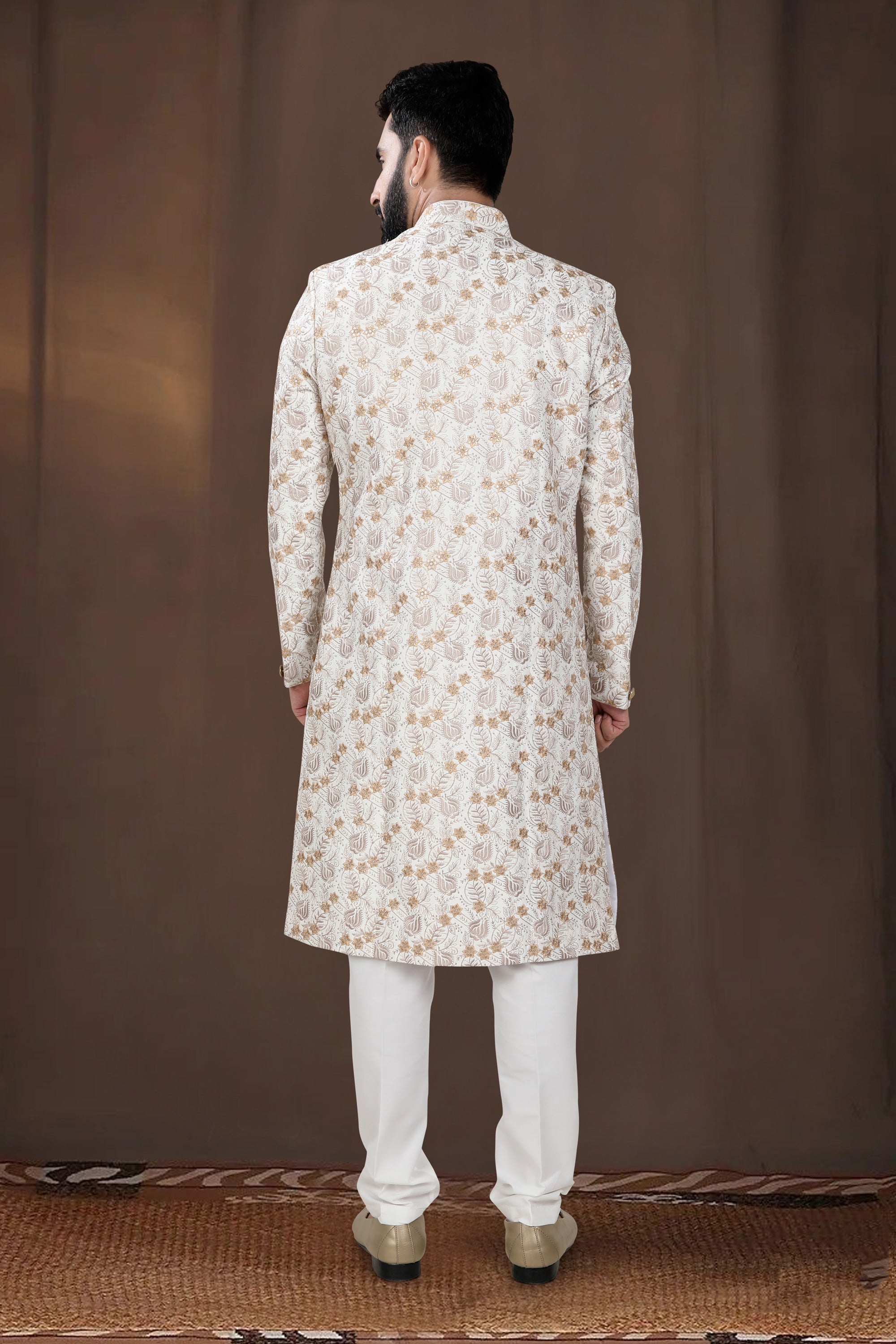 Off White Wedding Wear Silk Designer Readymade Indo Western For Men