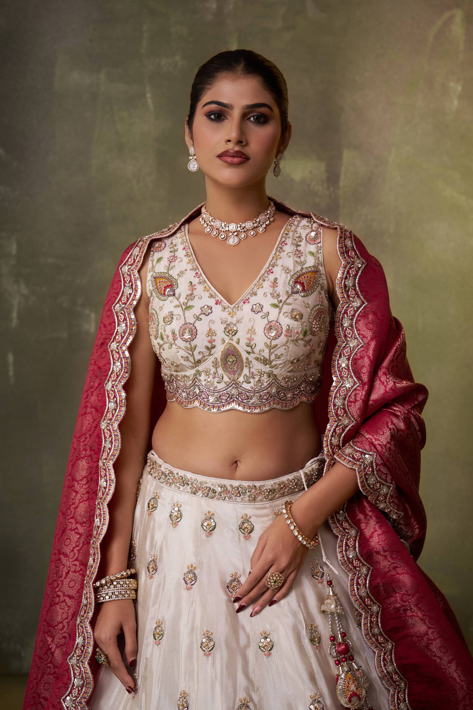 Paired with a beautifully designed blouse and a graceful dupatta, this lehenga choli creates a complete and harmonious wedding look. Its flattering silhouette and rich textures ensure you stand out with confidence and grace throughout the occasion. Due to digital photography, slight color variations may occur.