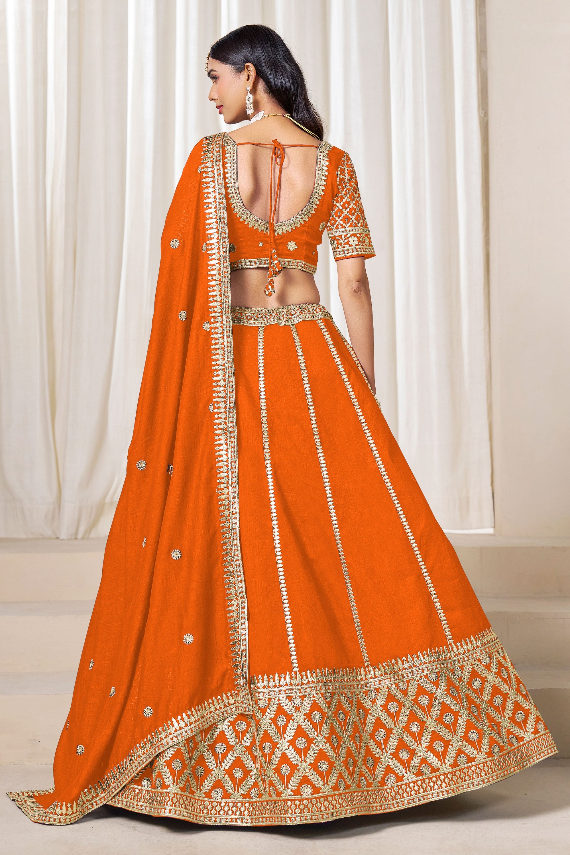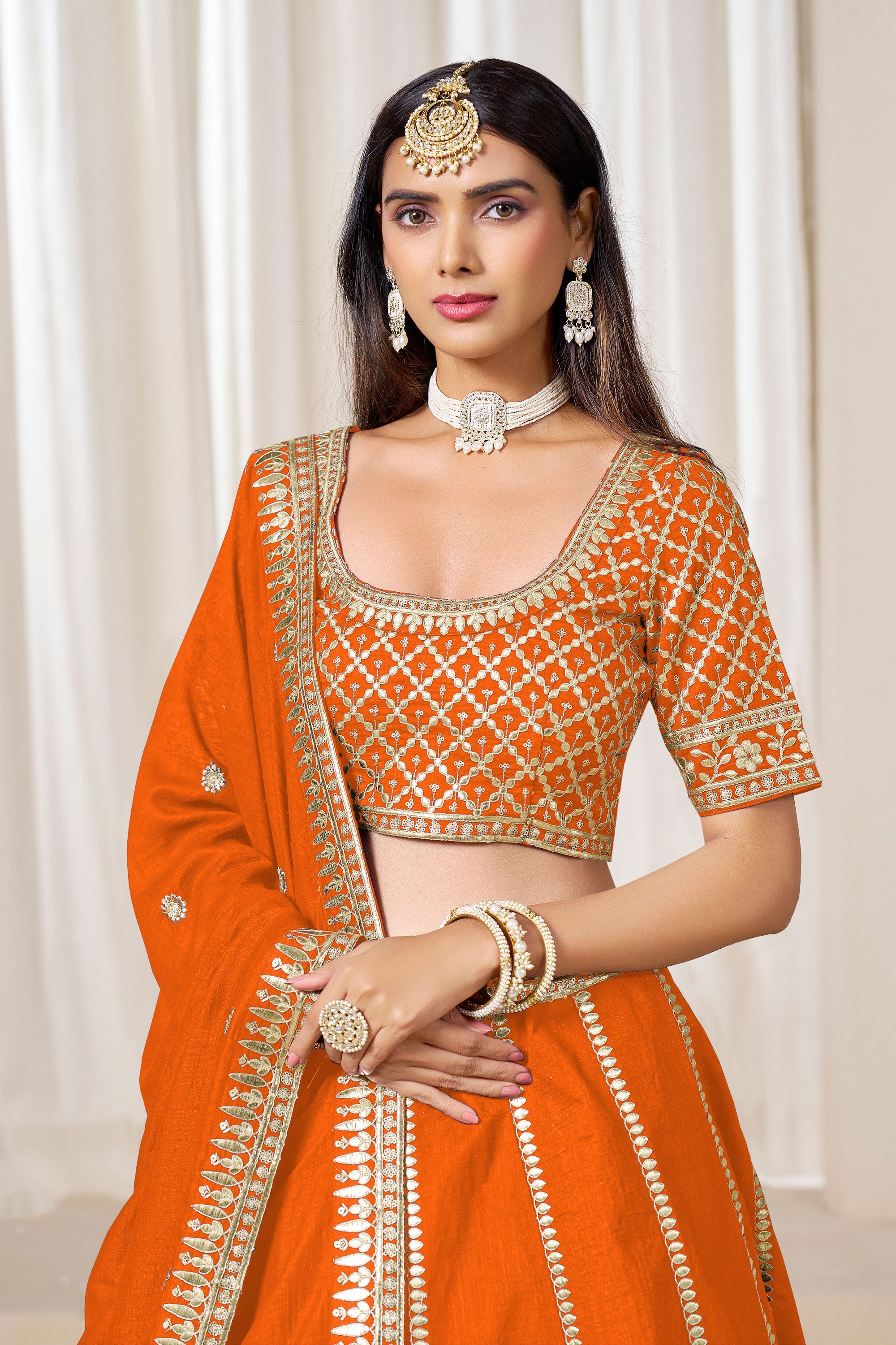 Orange Art Silk Occasion Wear Embroidered Lehenga Choli