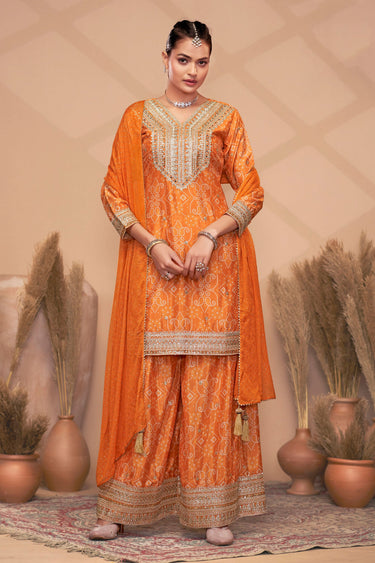 Orange Bandhej Print Readymade Palazzo Salwar Kameez