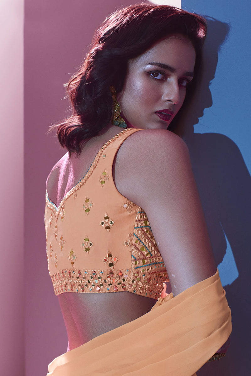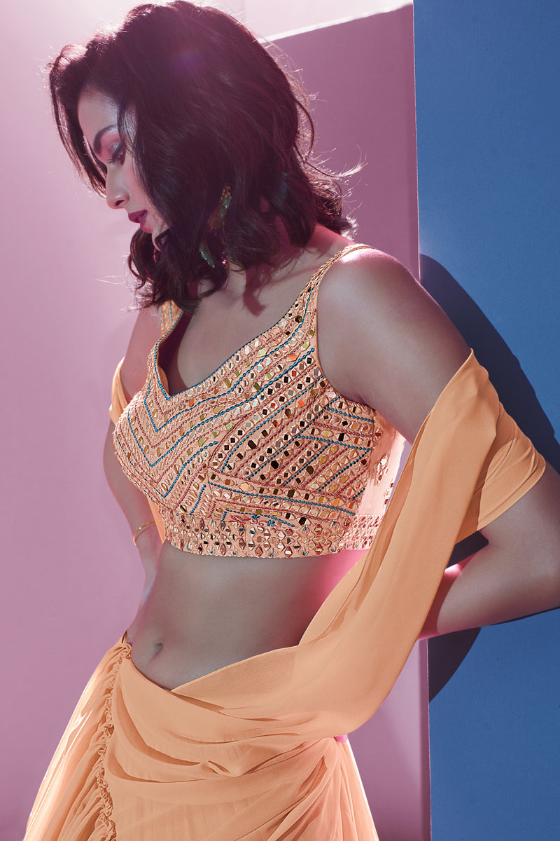 Orange Georgette Festive Wear Readymade Chaniya Choli With Beautiful Blouse
