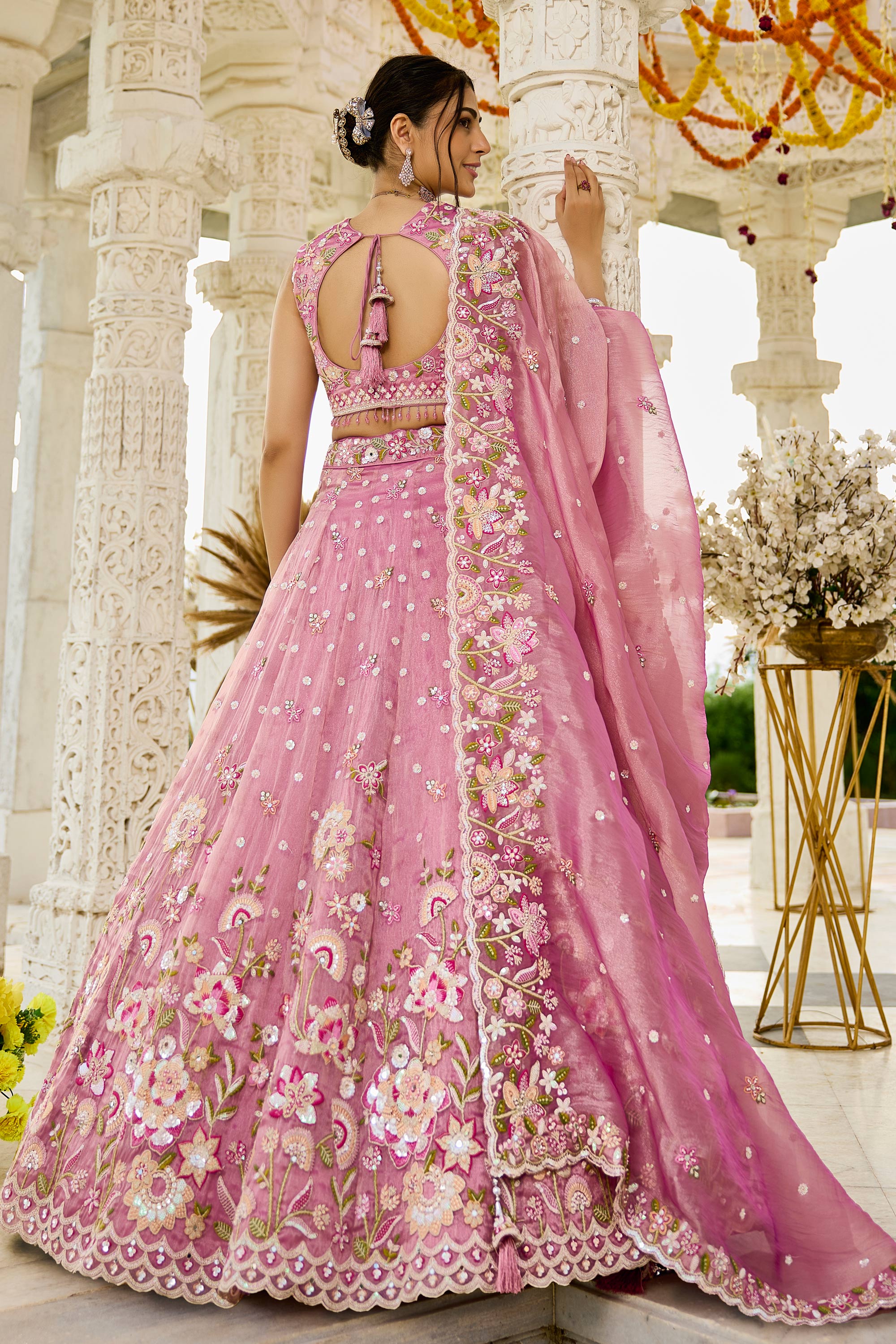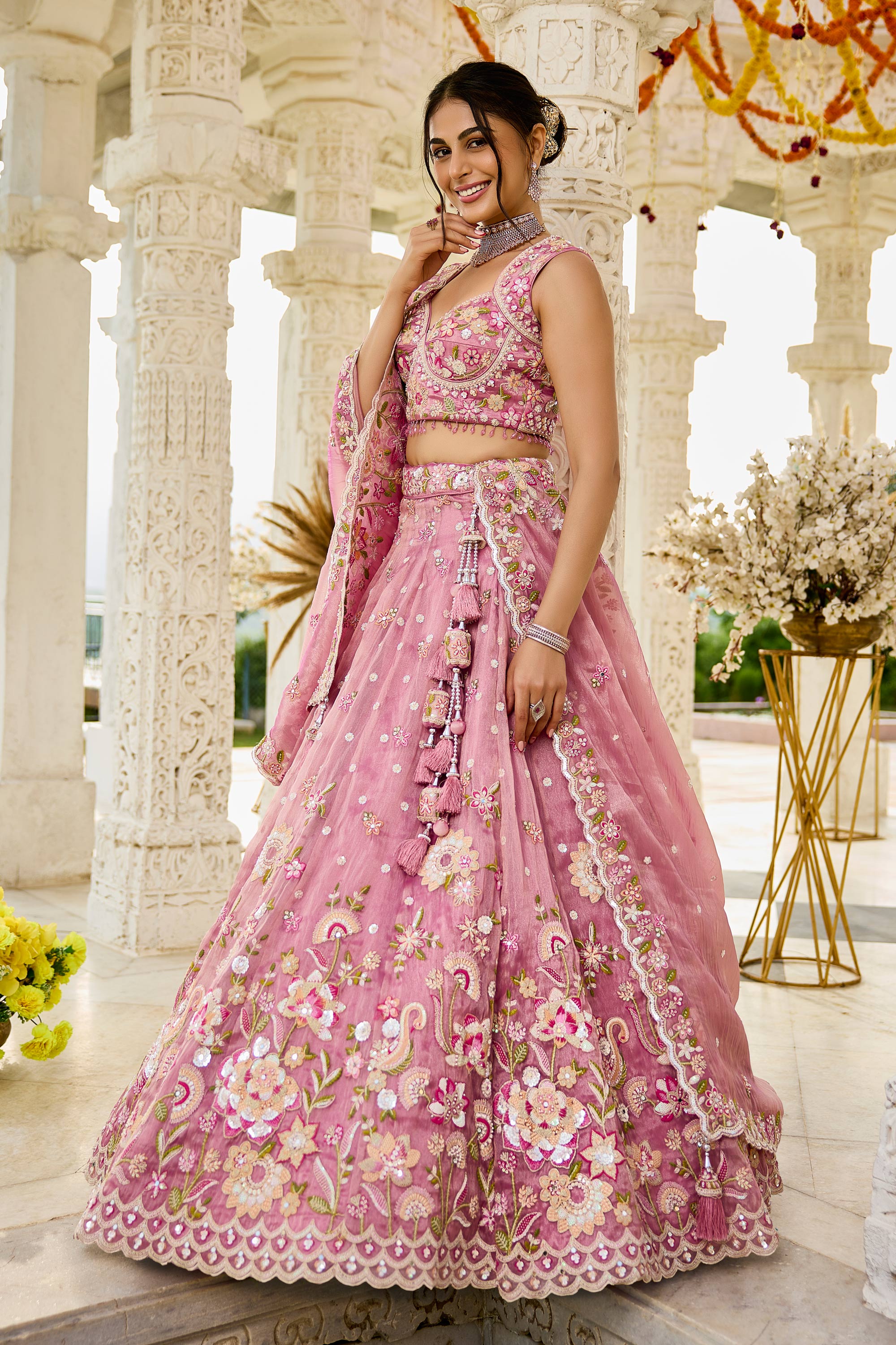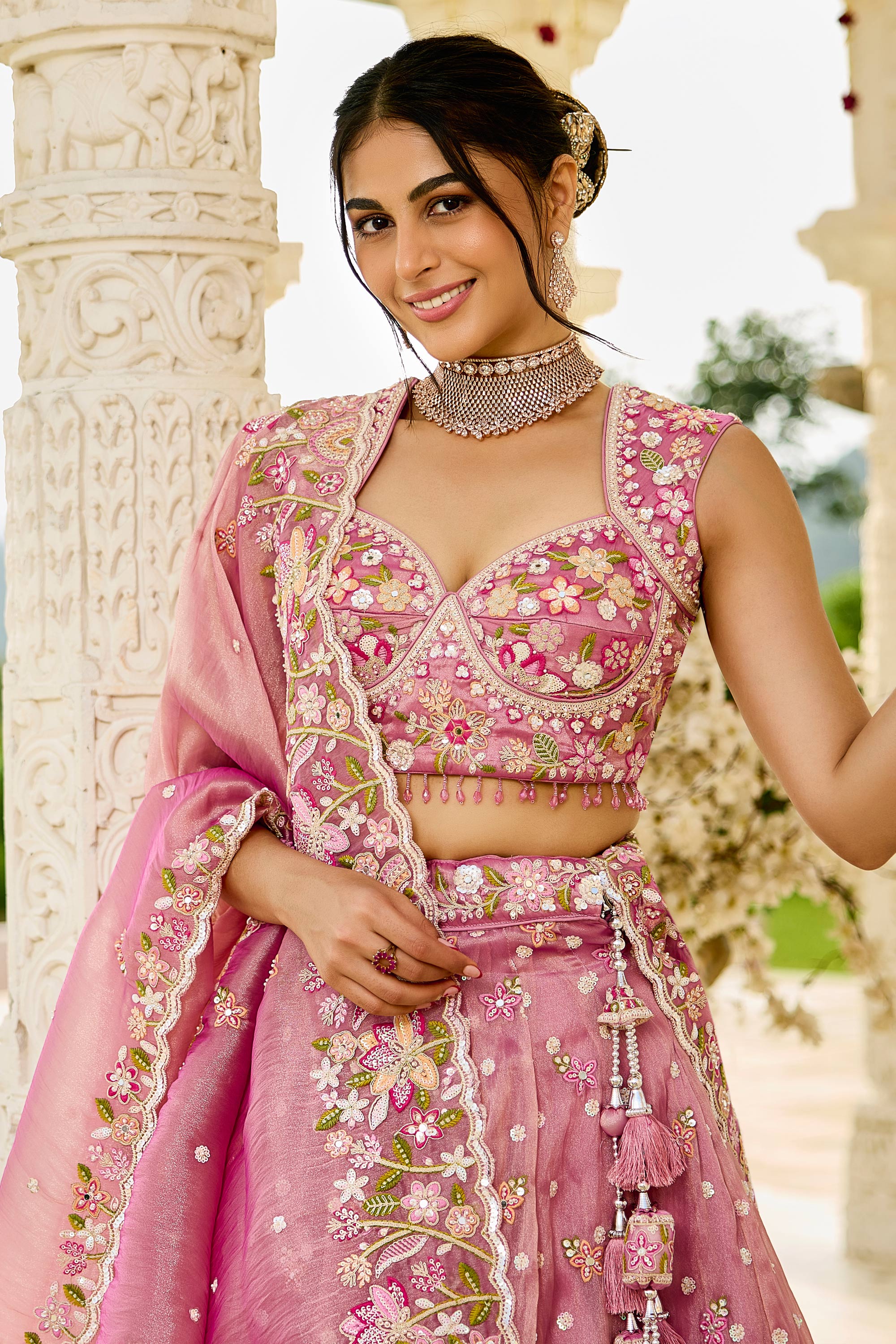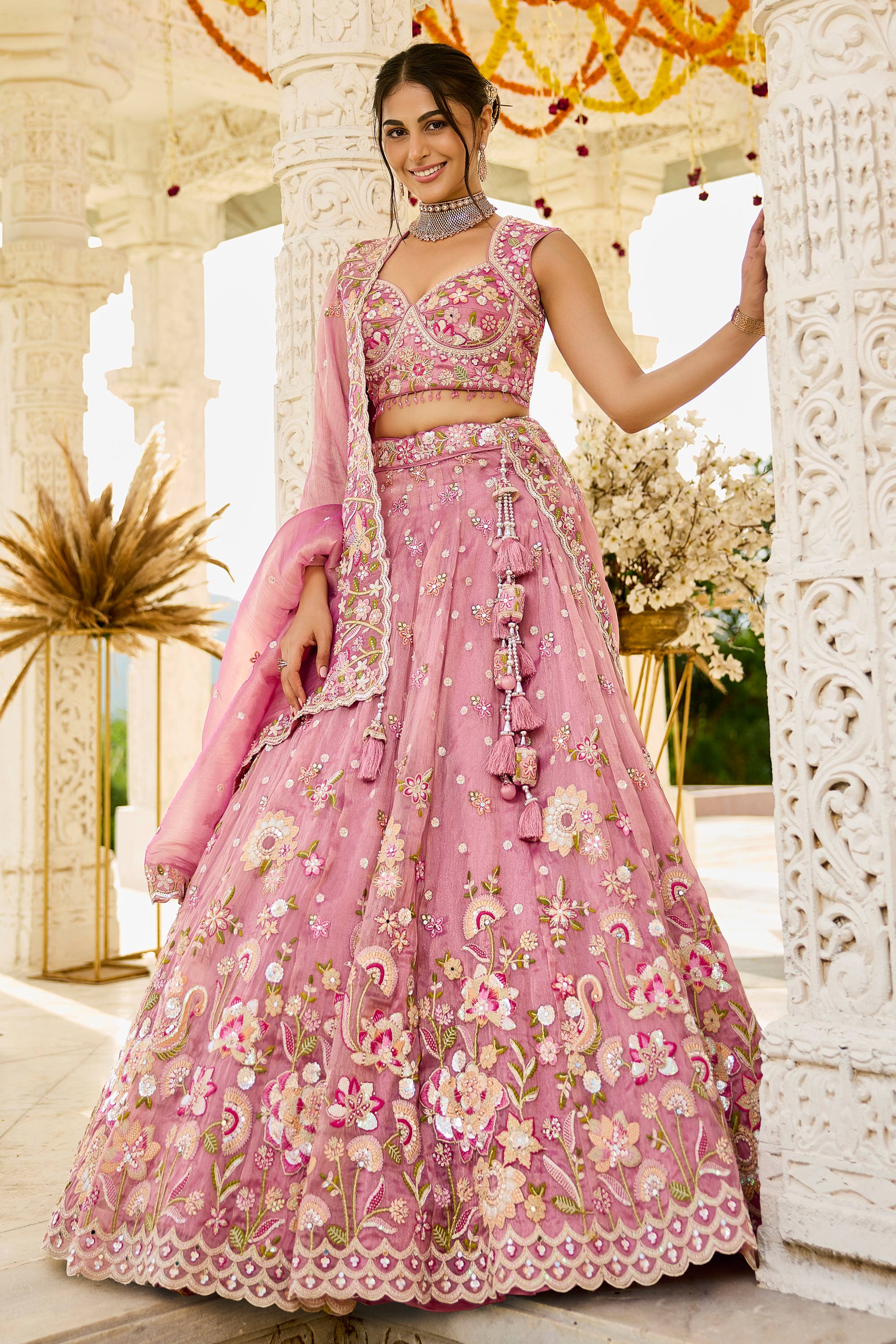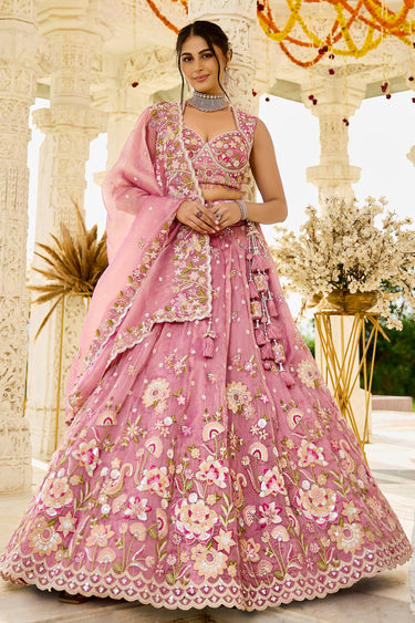 Organza Embroidered Pink Wedding Wear Lehenga Choli
