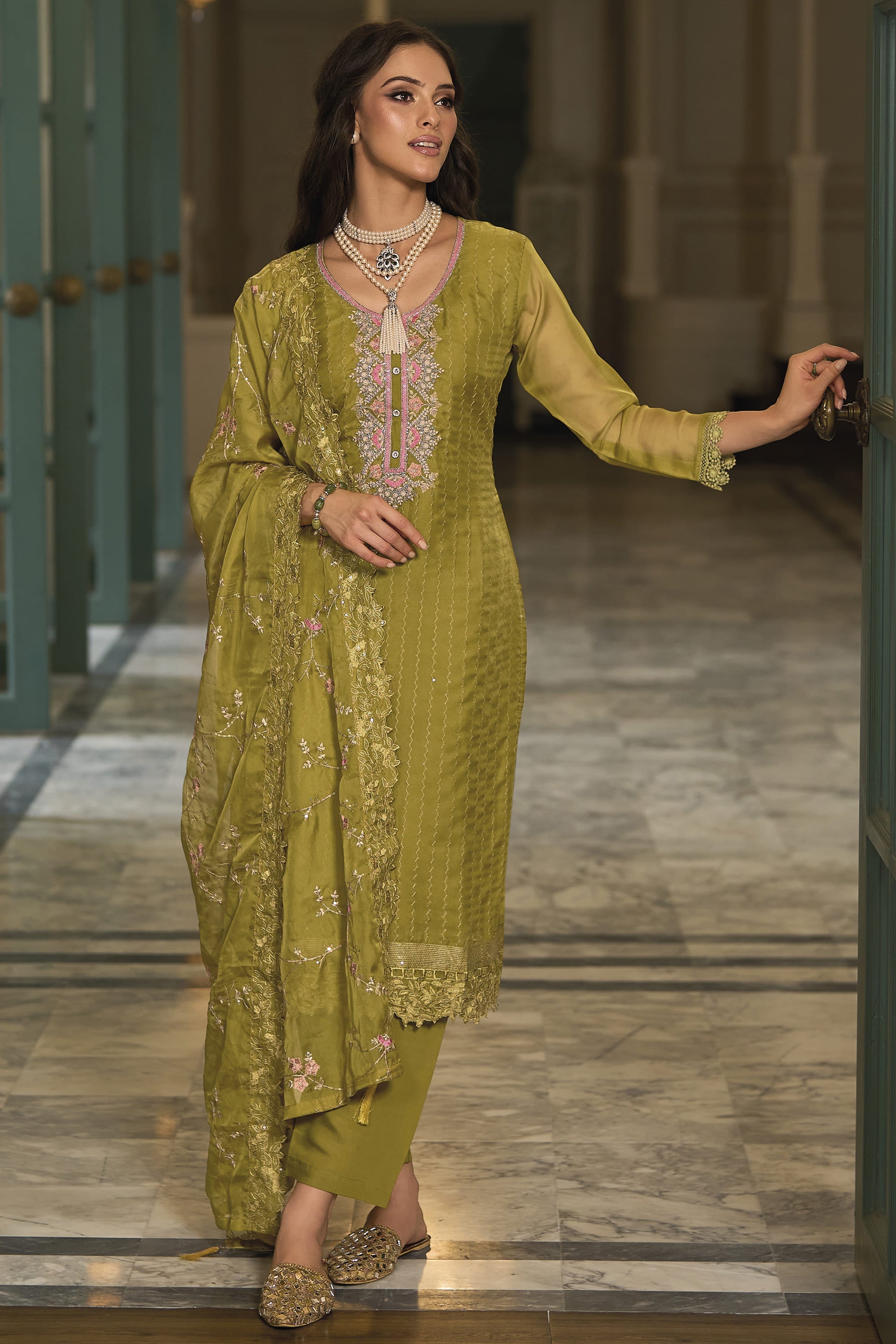 Organza Fabric Fancy Embroidered Function Wear Readymade Designer Salwar Suit