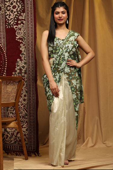 Organza Silk Fabric Green Color Riveting Ready To Wear Saree
