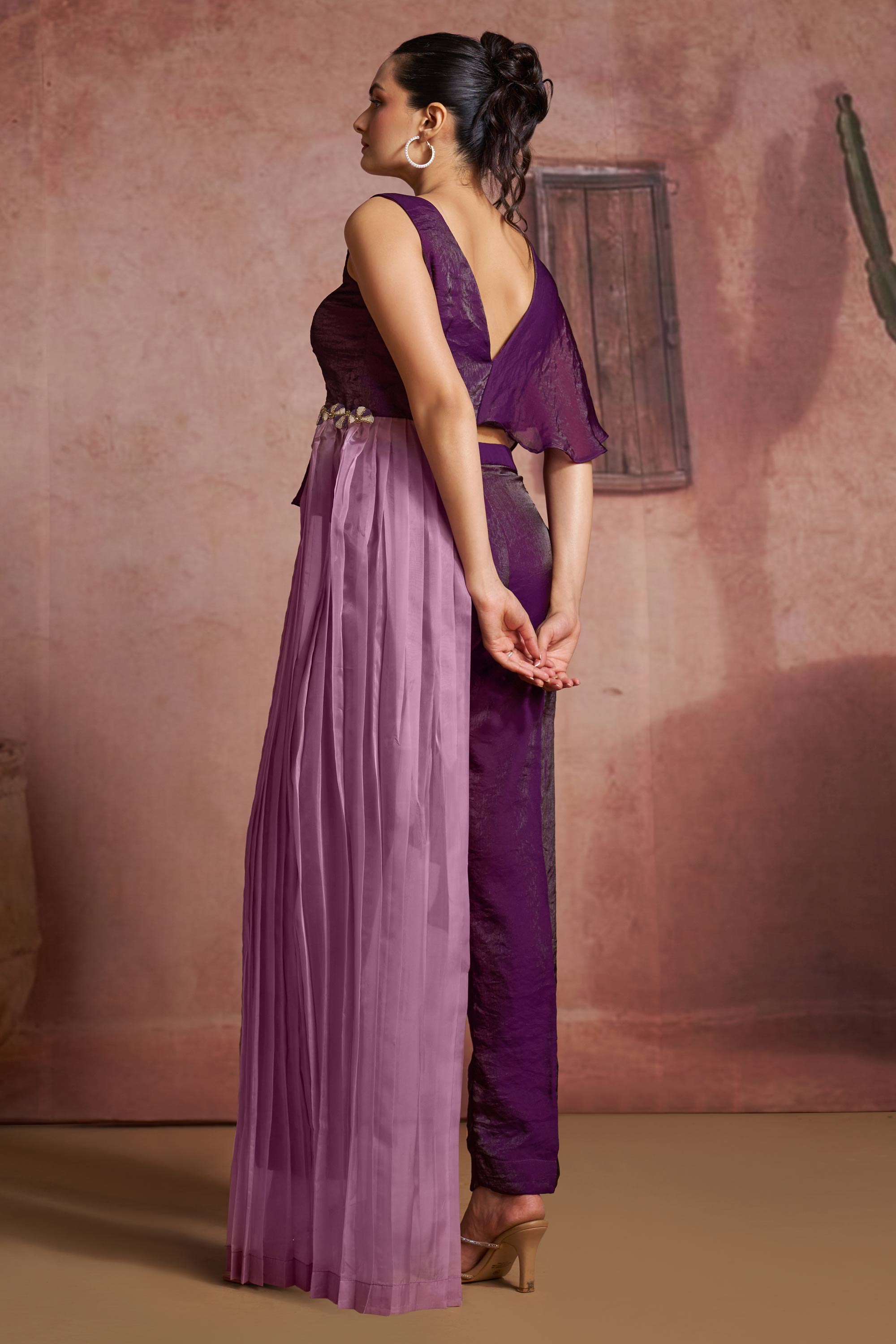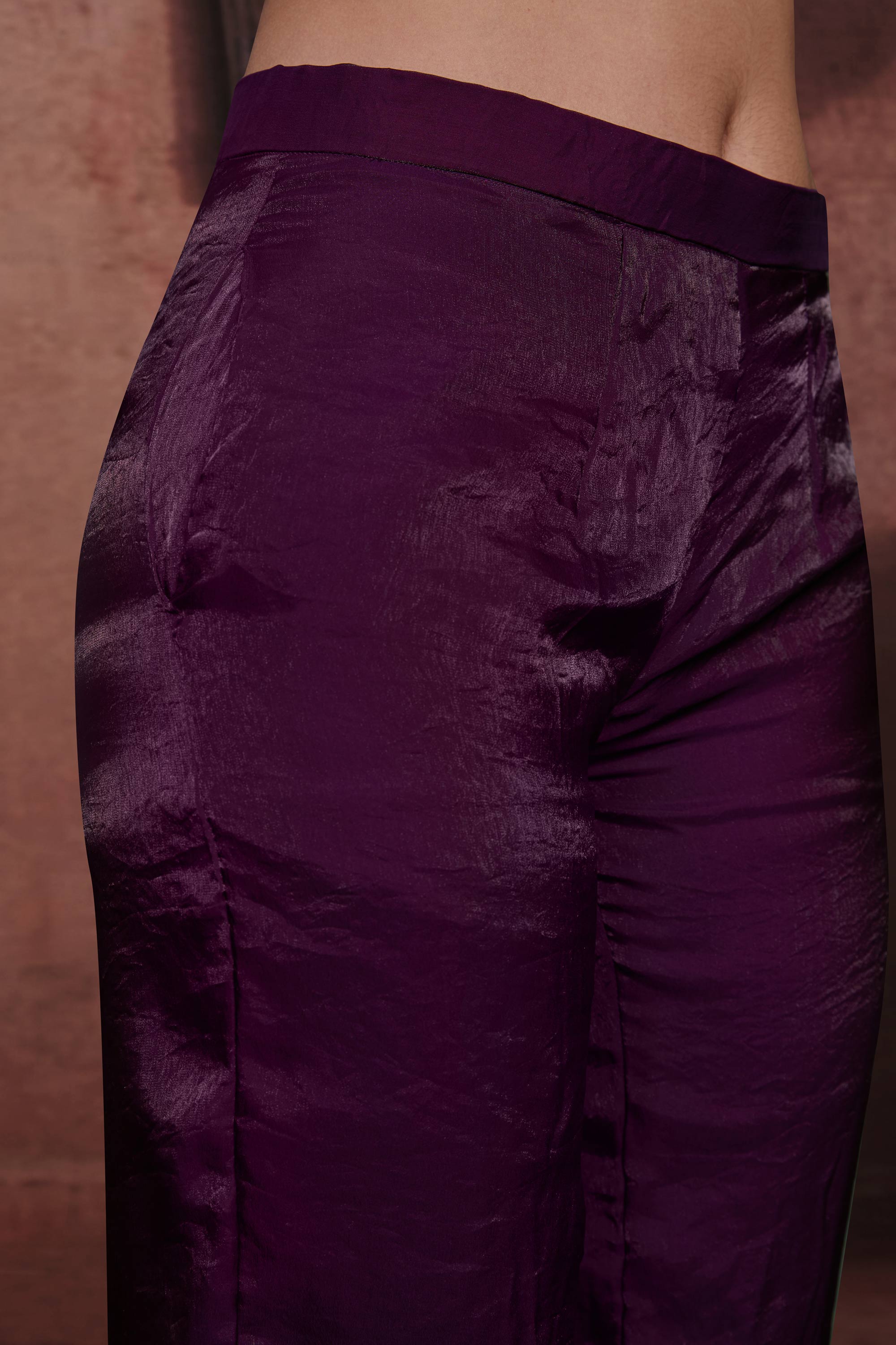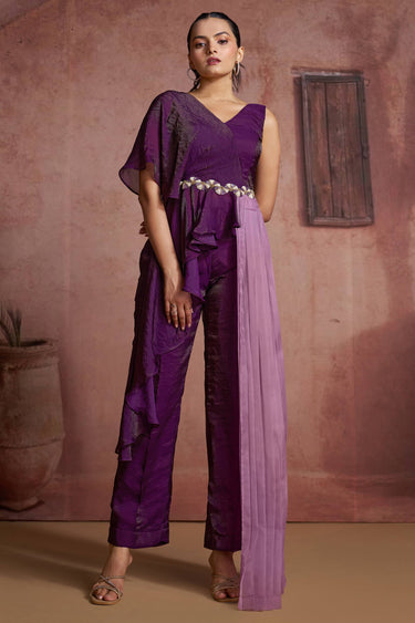Organza Wine Moti Work Readymade Designer Co Ord Set
