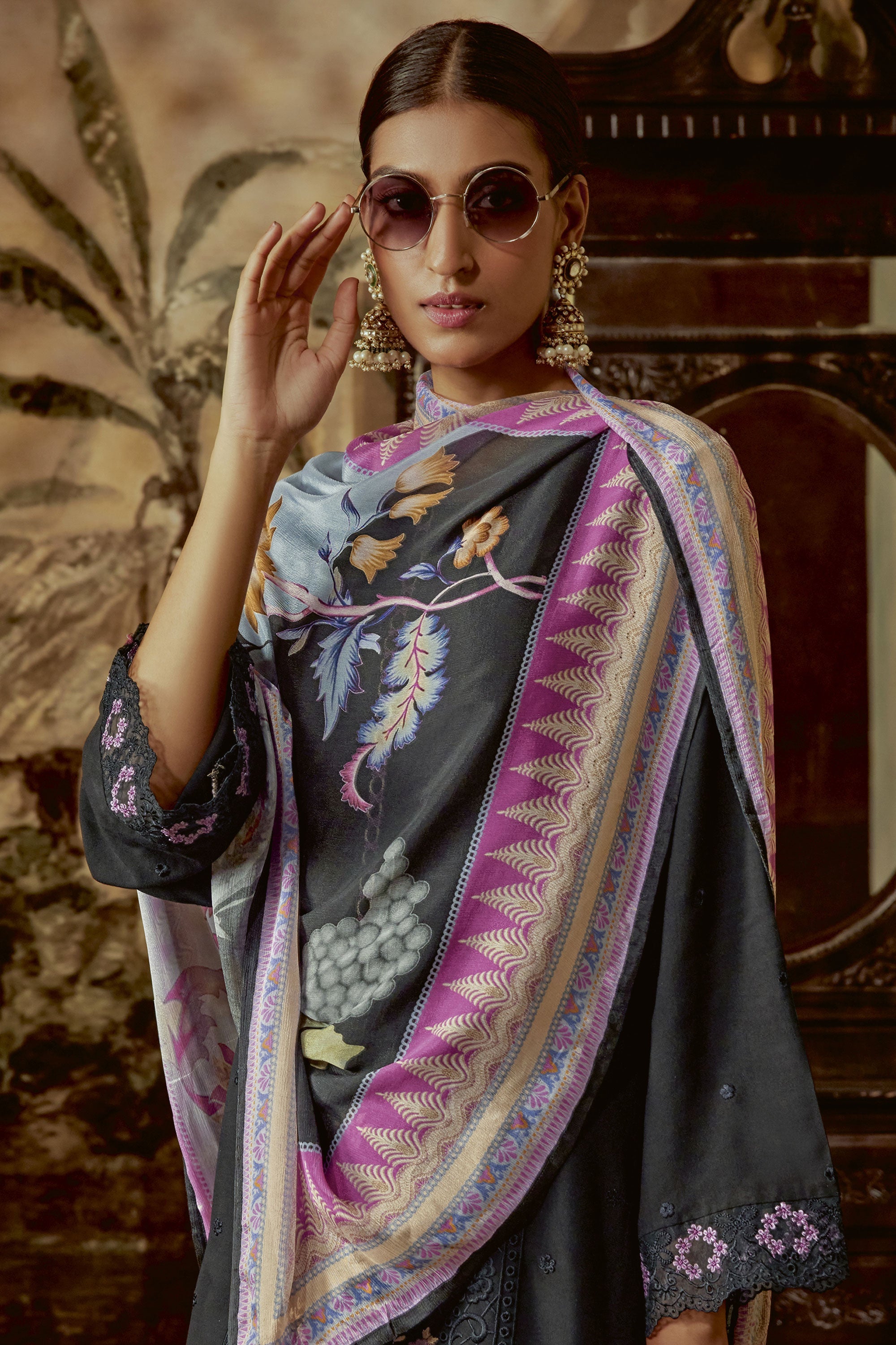 Experience traditional elegance with our beautifully Parsi Embroidered Function Wear Salwar Kameez, a quintessential piece for special occasions. Made from rich Modale Silk, the top exhibits stunning tonal boring and Parsi embroidery on the front and sleeves. Enhancing its grace is an organza boring Parsi border adorning the hemline and sleeves. A semi-stitched design with a top length of 46 inches and size of 54 inches. Complete the ensemble with our Modale Silk bottom and Pure Chinnon dupatta boasting a stunning digital print.