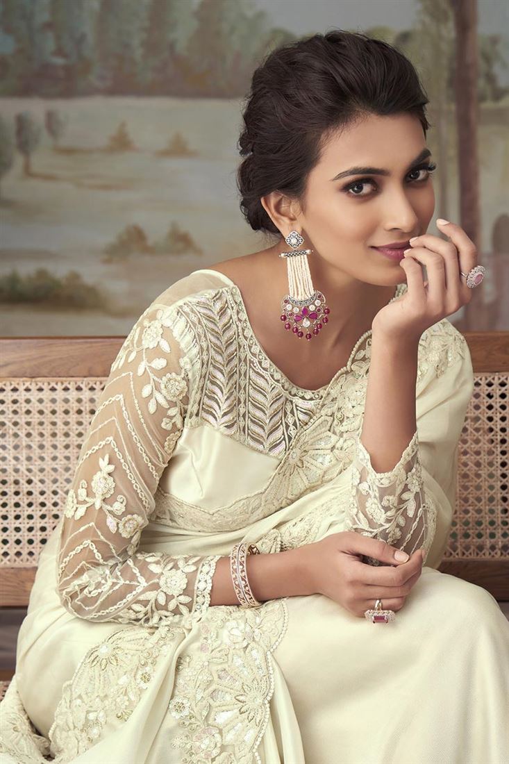 Party Style Mesmeric Art Silk Border Work Saree In Cream Color