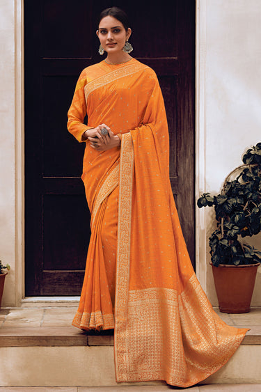 Party Style Orange Color Art Silk Designer Saree With Weaving Designs