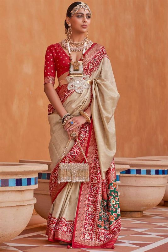 Patola Printed Art Silk Patola Printed Saree in Beige Color
