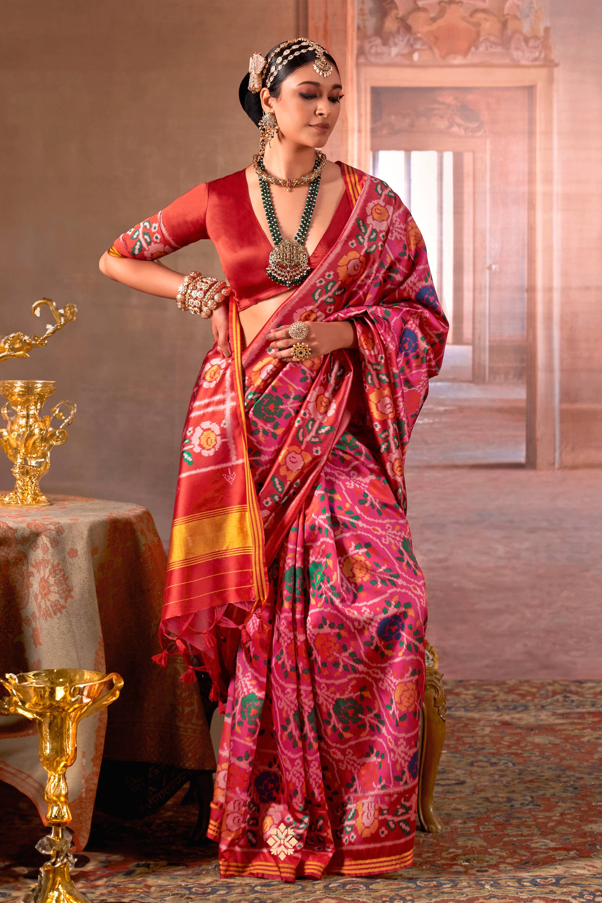 Discover the timeless charm of the Reach Color Fancy Printed Patola Saree, complete with a trendy blouse piece for a flawless ensemble. This saree showcases exquisite designs with rich colors, making it perfect for festive occasions, ceremonies, or special celebrations. Its premium fabric promises a luxurious feel, ensuring comfort without compromising on style. The complementary blouse enhances the overall appeal, making it a versatile addition to your collection. Easy to style and accessorize, this saree offers an elegant option for any event where tradition meets contemporary fashion.