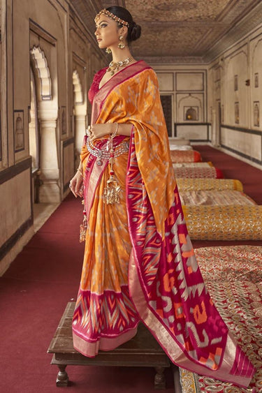 Patola Silk Fabric Orange Color Function Wear Majestic Saree With Printed Work