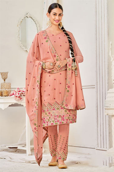 Peach Color Embroidered Trendy Georgette Salwar Suit