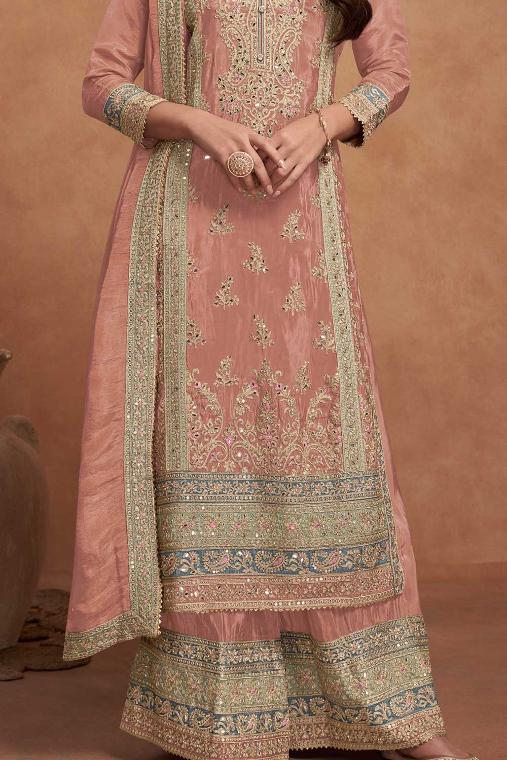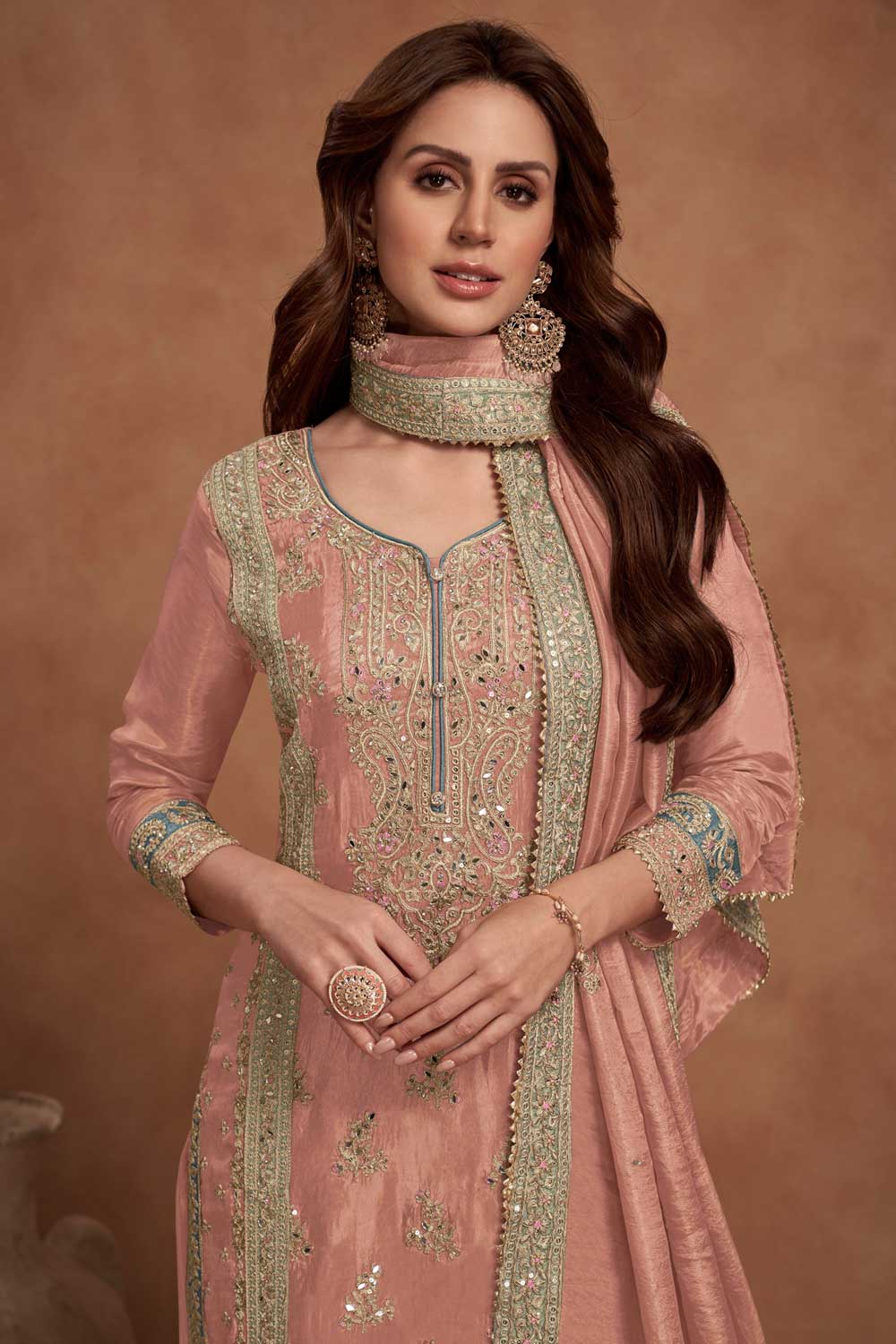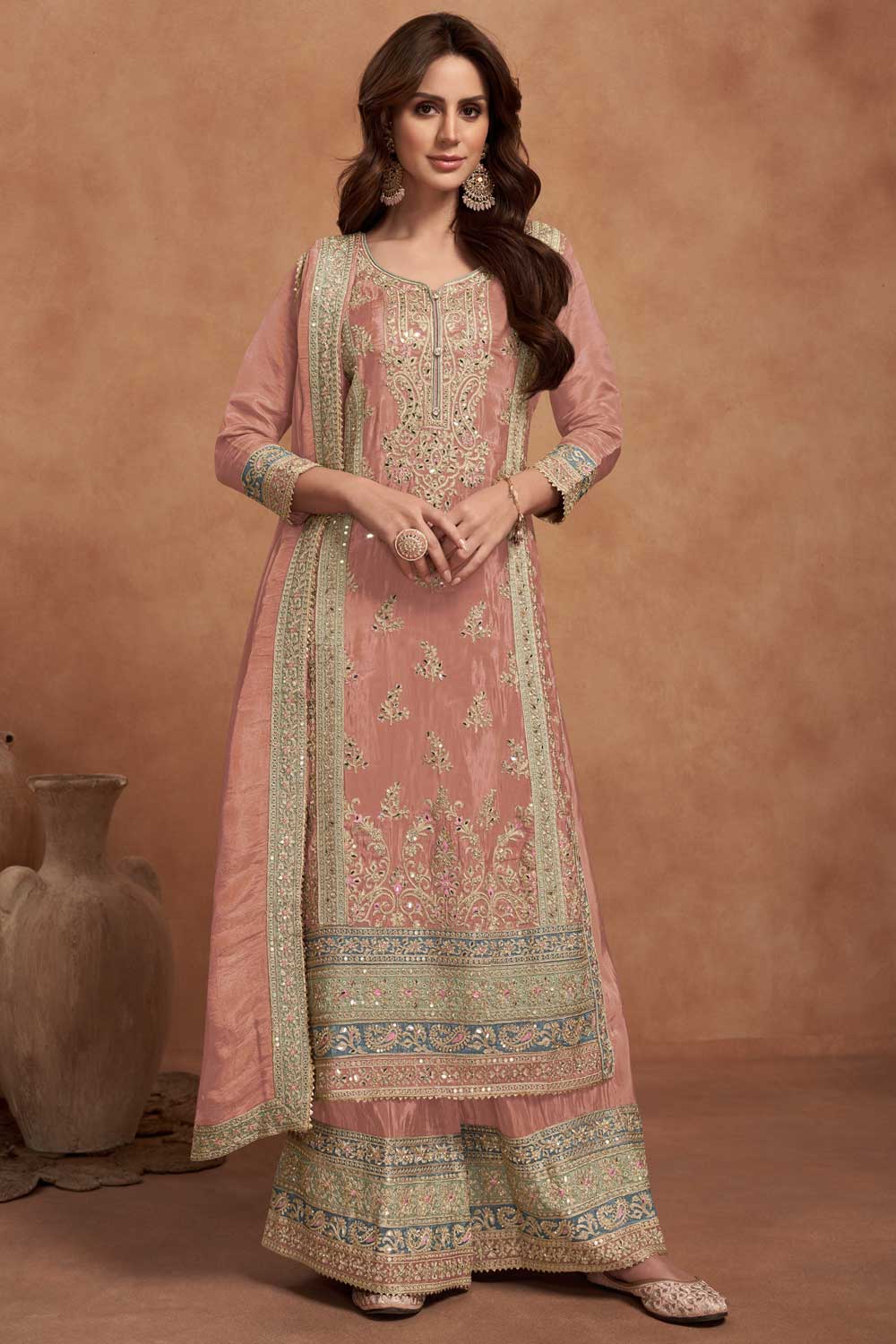 Peach Color Fancy Fabric Beatific Festive Wear Palazzo Suit