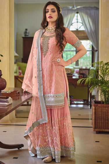 Peach Color Function Wear Embroidered Georgette Fabric Palazzo Suit