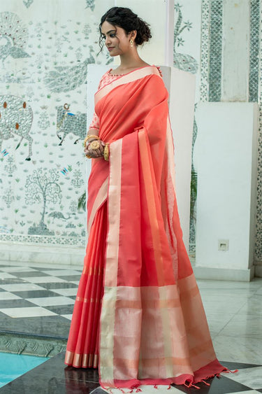 Peach Color Linen Fabric Beatific Regular Saree